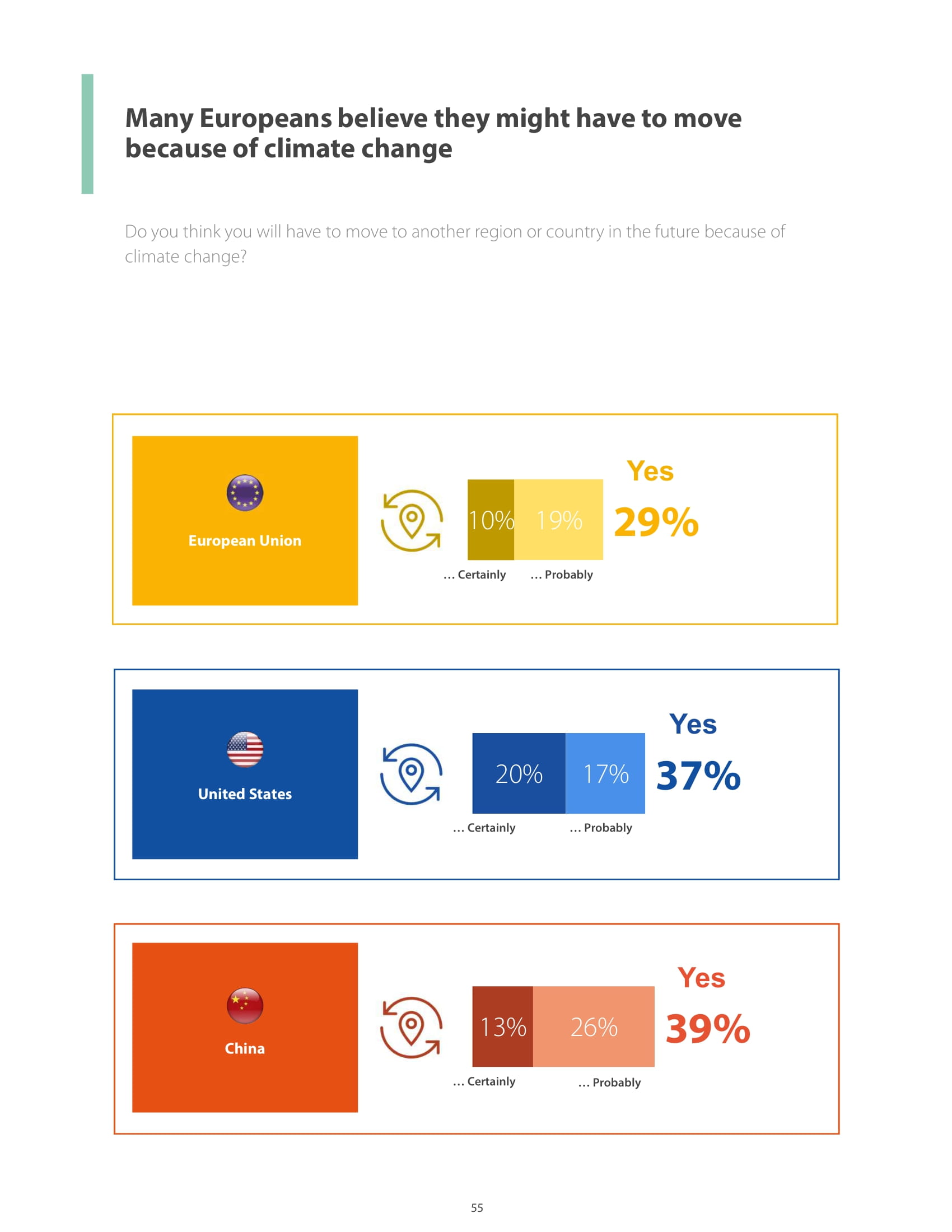 유럽에서 실시한 기후변화에 대한 설문조사에 따르면 꽤 많은 주민들이 기후 이민자가 될 가능성을 인지하고 있다.