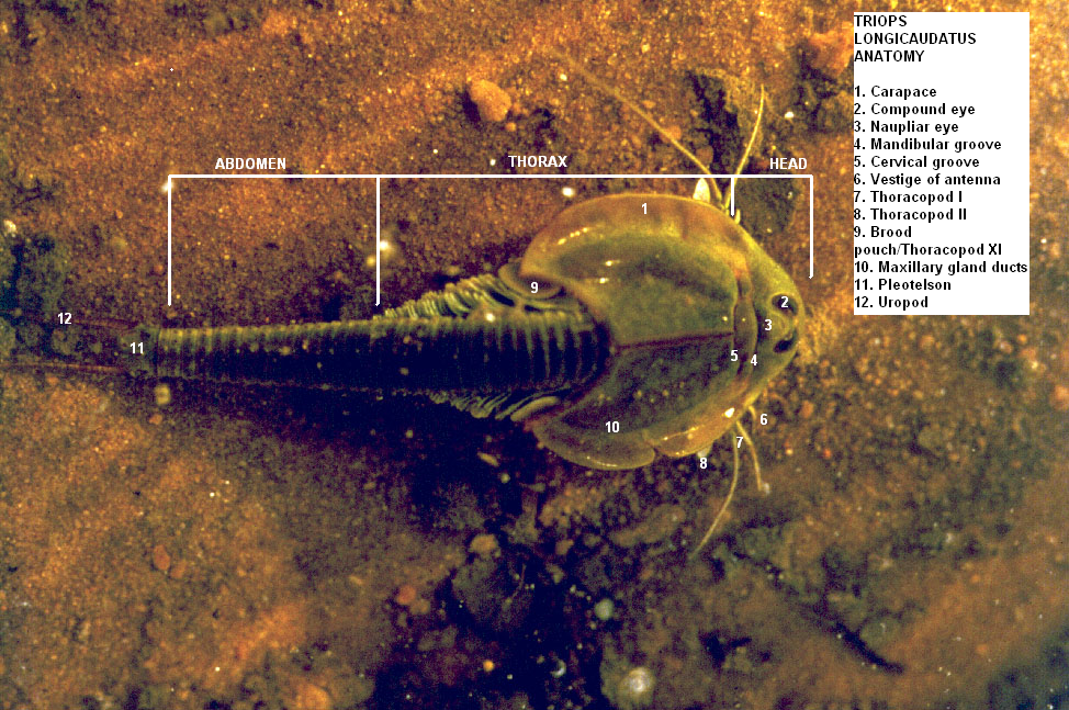 ''긴꼬리투구새우''의 머리는 갑각류의 전형적인 모습이며 다섯 개의 체절로 구성되지만, 머리 부속지는 축소되는 경향을 보인다.[3]
