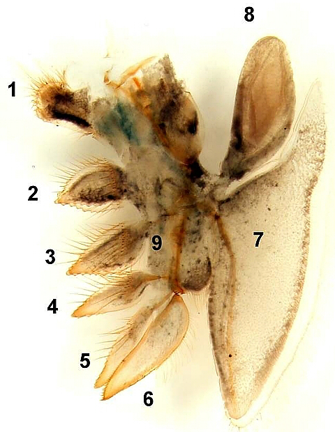 몸의 끝부분에 있는 뒤쪽의 5~14개 체절에는 부속지가 없다. 몸의 끝에는 마지막 배마디와 미절이 융합된 미부가 있으며, 길고 여러 마디로 된 꼬리다리에 연결되어 있다.[3]
