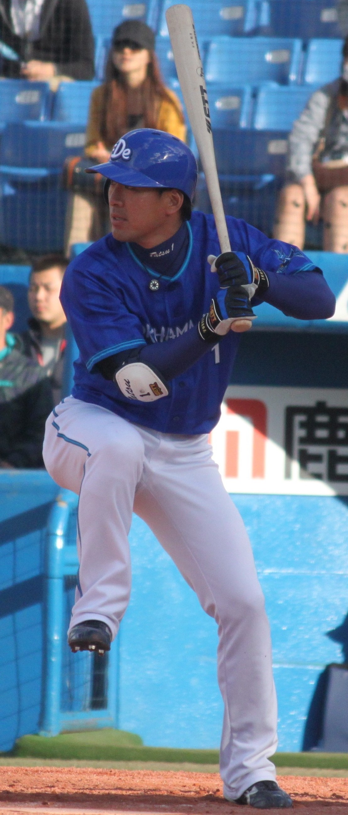 2012년, 팀명이 요코하마 DeNA 베이스타스로 변경된 후 맞이한 시즌 개막전에 선발 출전했다. 4월 1일 한신 타이거스와의 개막 3차전에서는 팀명 변경 후 첫 홈런을 기록했다. 9월 14일 도쿄 야쿠르트 스왈로스전에서는 무라나카 쿄헤이를 상대로 안타를 쳐내며 개인 통산 1500안타를 달성했다. 선발 출전 기회는 많았지만 대타로 나섰을 때 3할이 넘는 타율을 기록한 반면, 득점권 타율은 .132로 매우 부진했다. 시즌 후 연봉이 40% 삭감된 3000만 플러스 성과급으로 재계약했다.[18]