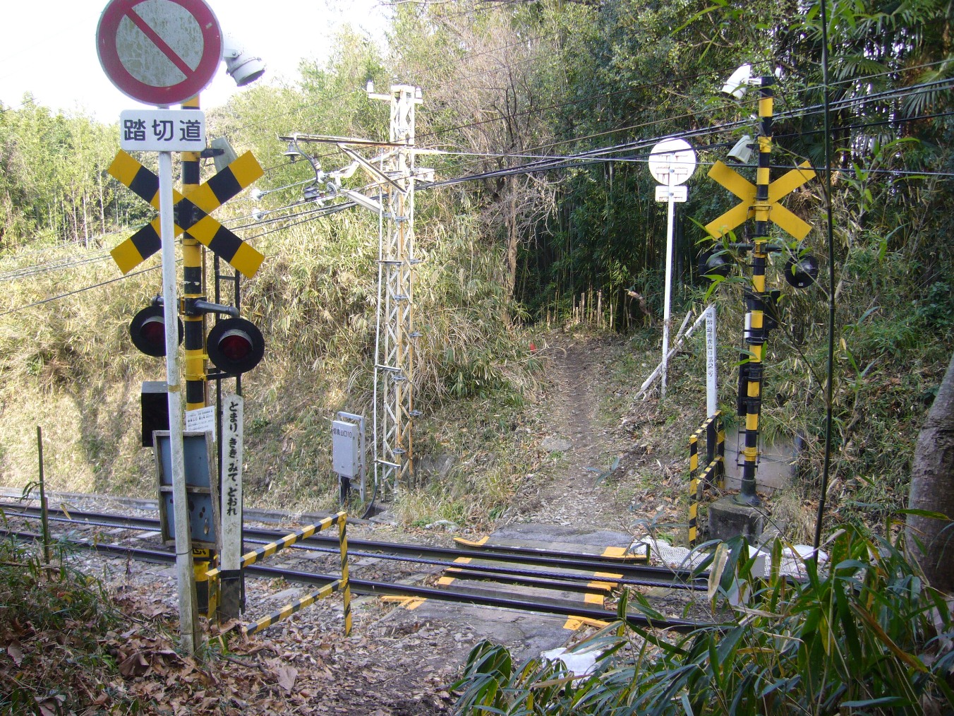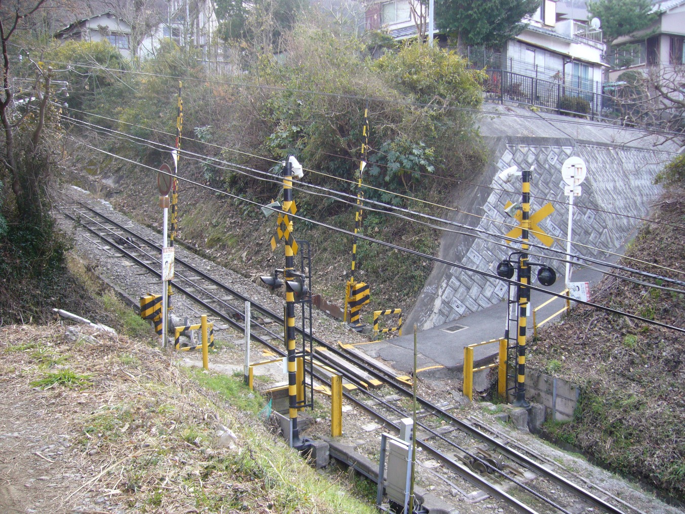 이 노선에는 2곳의 건널목이 있다. 일반인이 건널 수 있는 건널목을 가진 케이블카는 전국적으로 이 노선과 이코마 강삭선 2개 노선뿐이다.
