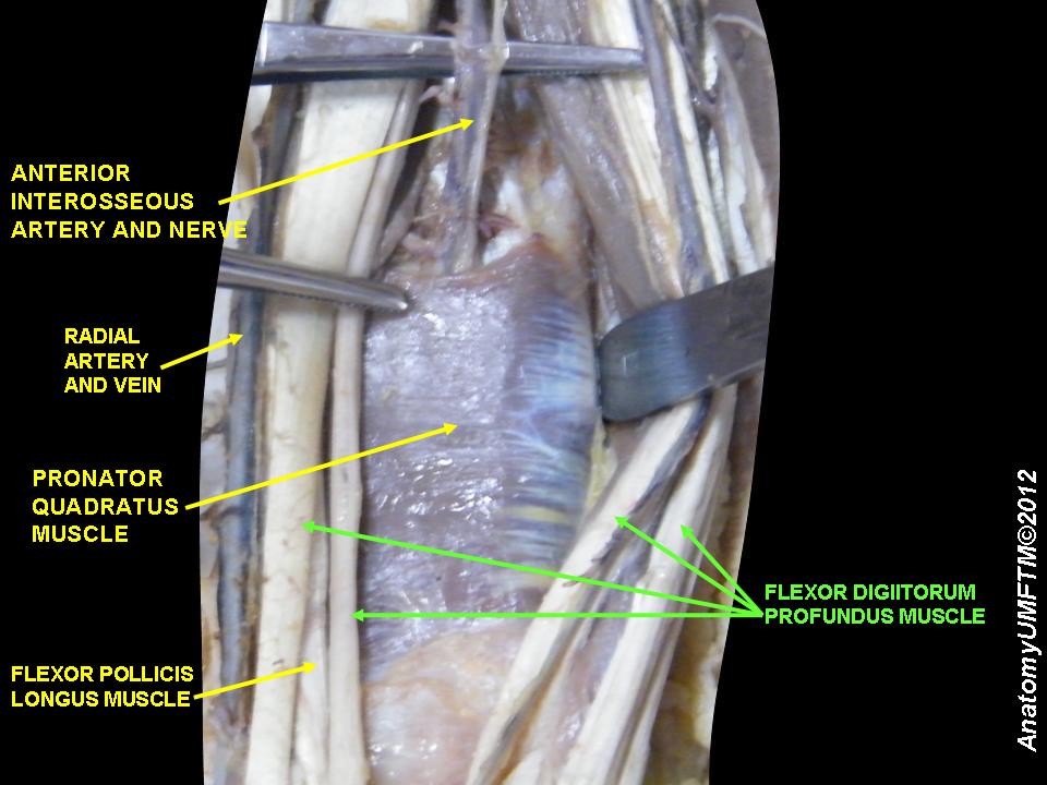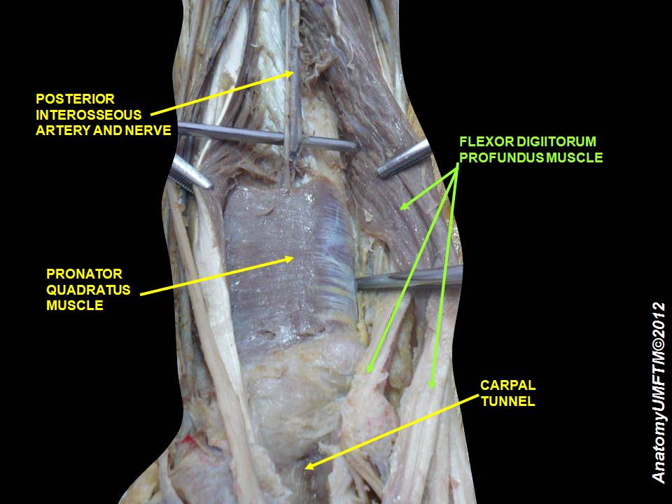 위치 | 자뼈 몸통 앞쪽 및 내측면의 위쪽 3/4 뼈사이막 아래팔의 심부근막 |
