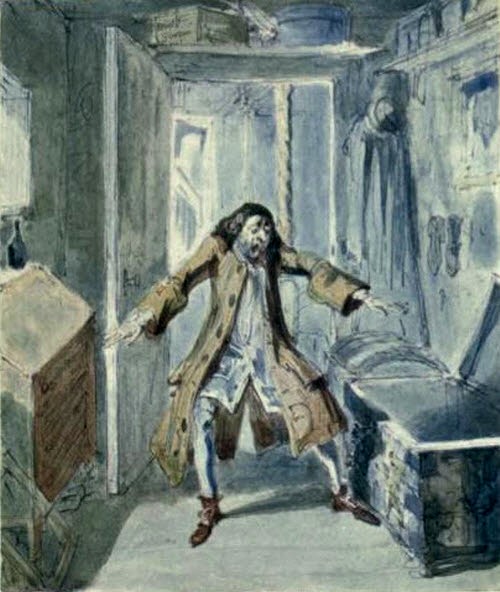 18세기는 구두쇠 전설이 풍부했던 시기로, 앨런 램지는 "비참한 구두쇠의 마지막 말"에서 자신의 재산에 작별을 고하는 코믹한 독백을 통해 비용을 피하기 위한 방법을 자세히 설명한다.[54] 알렉산더 포프는 ''배서스트에게 보내는 서신''에서 코타라는 인물을 통해 돈을 쓰기 싫어하는 귀족을 묘사했다.[55] 윌리엄 스티븐슨은 그의 작품집에 구두쇠에 대한 아홉 개의 풍자적인 묘비명을 포함시켰다.[56]