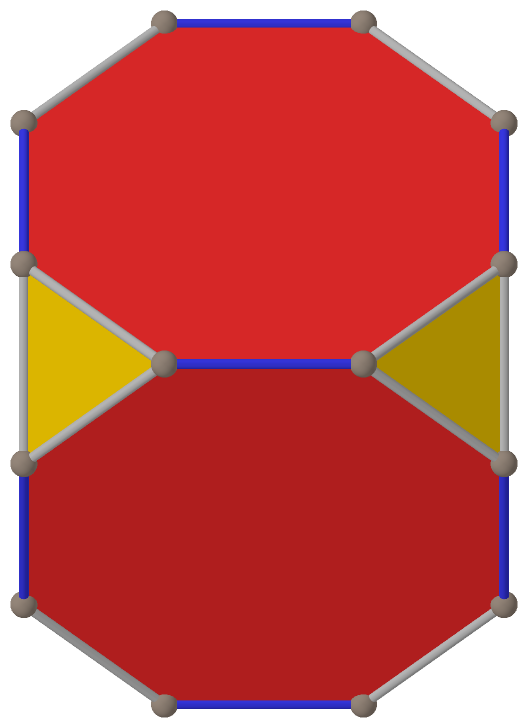 이 다면체는 꼭짓점 배치가 (3.2*n*.2*n*)이고 [*n*,3] 코크서 그룹 대칭을 가지며, 깎은 정다각형 다면체 및 *n*.8.8 타일링과 위상적으로 관련되어 있다.8. 2. 교대 절단