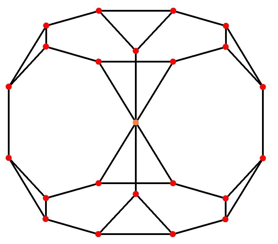 깎은 정육면체는 꼭짓점 배치를 세 개의 비볼록 균일 다면체와 공유한다.