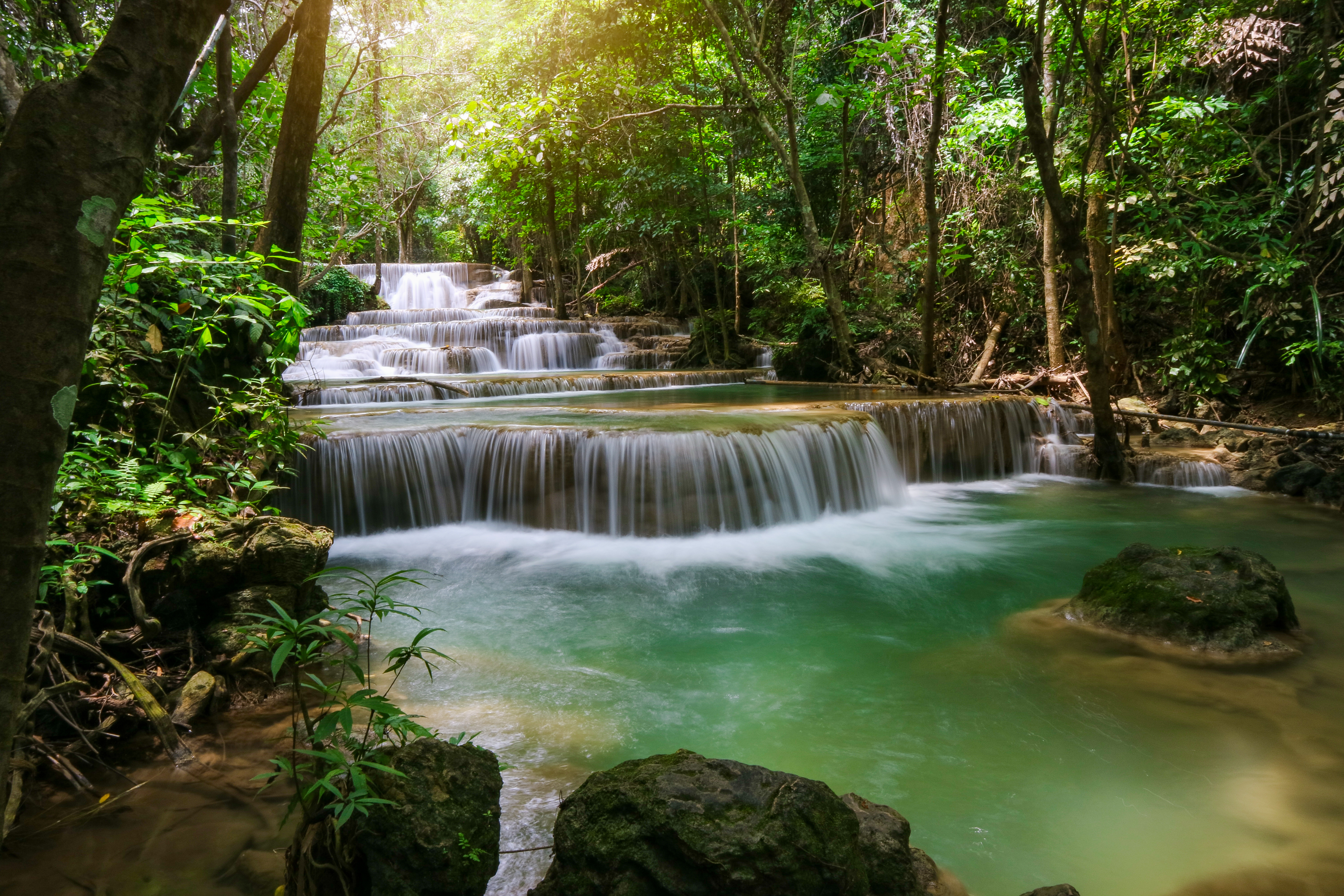 - 카오 래엠 국립공원: 태국 서부에 있는 약 1,500제곱킬로미터 규모의 공원으로, 깐짜나부리 주 테나세림 언덕의 북부에 위치해 있다. 서부 삼림 지대의 일부이며, 방콕에서 북서쪽으로 약 340km 떨어진 깐짜나부리 주에 있는 카오 래엠 저수지를 둘러싸고 있다. 323번 국도가 통과하며, 식생은 혼합 낙엽, 언덕 상록수, 건조 상록수림으로 구성되어 있다. 퉁야이 나레수안 야생 동물 보호 구역과 인접해 있으며, 이 보호 구역은 카오 래엠 국립공원의 북동쪽에 위치해 있다. 이 지역의 대형 동물로는 호랑이, 코끼리, 가우르, 삼바 사슴, 짖는 사슴, 멧돼지 등이 있다.[23]