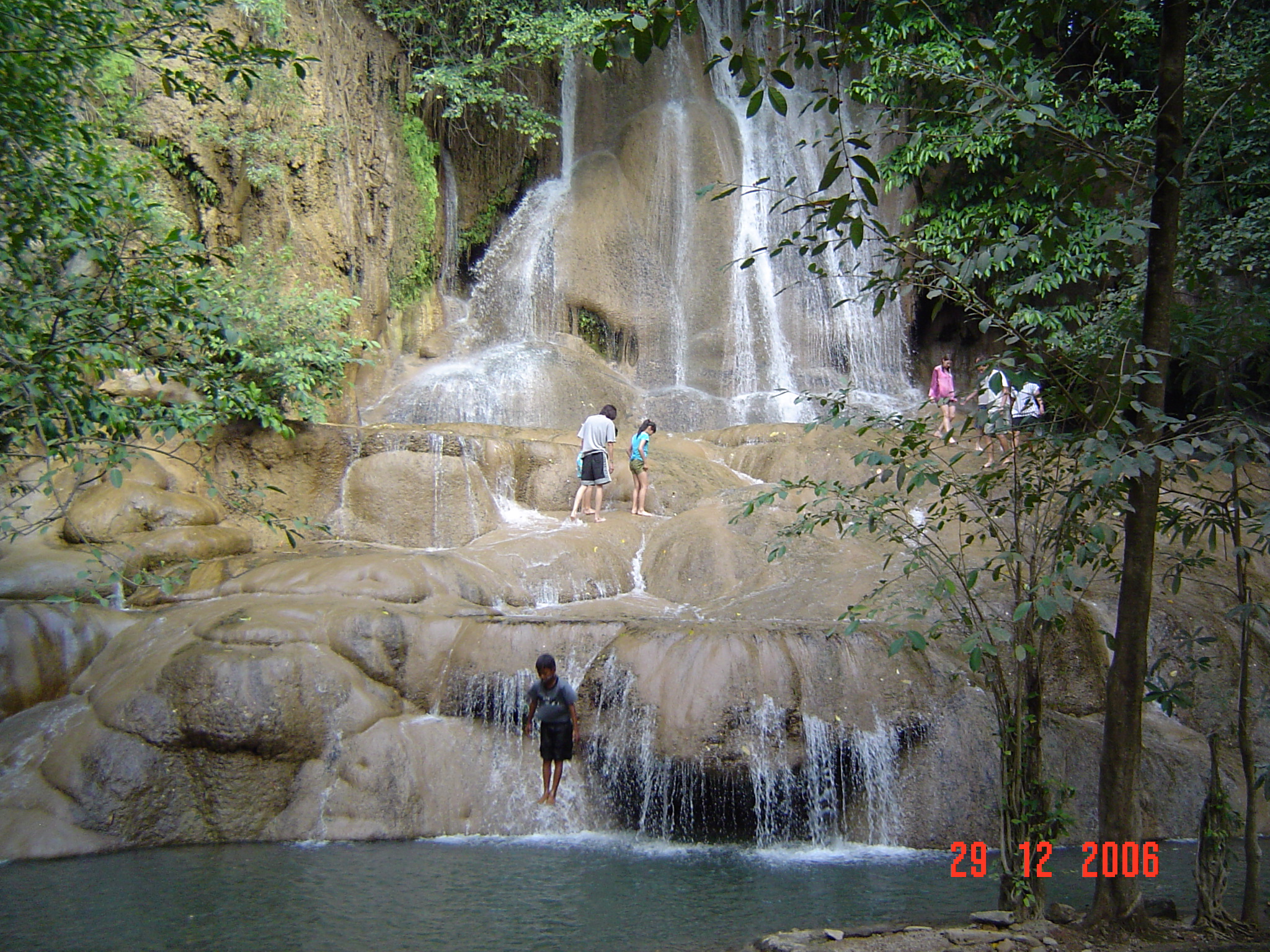 - 에라완 국립공원: 시사왓군 타크라단 땀본에 위치하며, 1975년에 설립된 태국의 12번째 국립공원이다. 주요 명소는 힌두 신화에 나오는 세 개의 머리를 가진 흰 코끼리인 에라완의 이름을 따서 명명된 에라완 폭포이다. 7단 폭포는 에라완을 닮았다고 하며, 공원에는 미 동굴, 루아 동굴, 왕바단 동굴, 파르탓 동굴 등 4개의 동굴이 있다.[19][20] 폭포 지역의 북동쪽에는 가슴 모양 언덕인 카오 놈 낭이 있다.[21]
