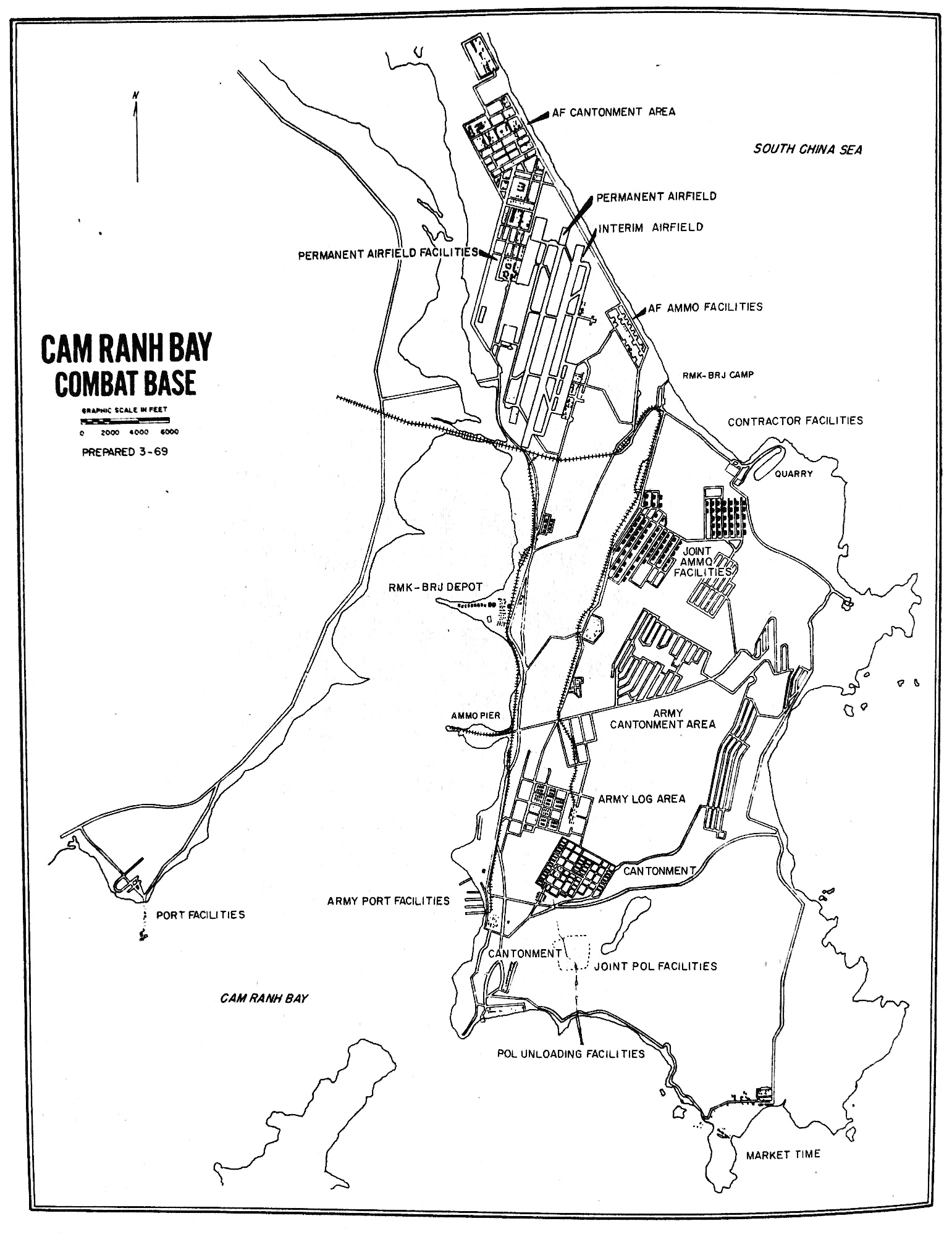 1963년, 해리 D. 펠트 제독은 캄란 만의 자연적인 깊은 수심의 만에 있는 부두 시설이 미래에 유용할 수 있다고 예측했다. 1965년 중반, 미 육군 제35공병건설단 공병들이 캄란 만에 상륙하여 야영지를 설치하고 캄란 기지 건설을 위한 도로 건설을 시작했다. 같은 해, 미국의 건설 컨소시엄 RMK-BRJ는 제트 전투 폭격기를 수용하기 위한 임시 활주로를 건설하기 시작했다. 1966년에는 4개의 델롱 부두가 항구에 추가되었다.