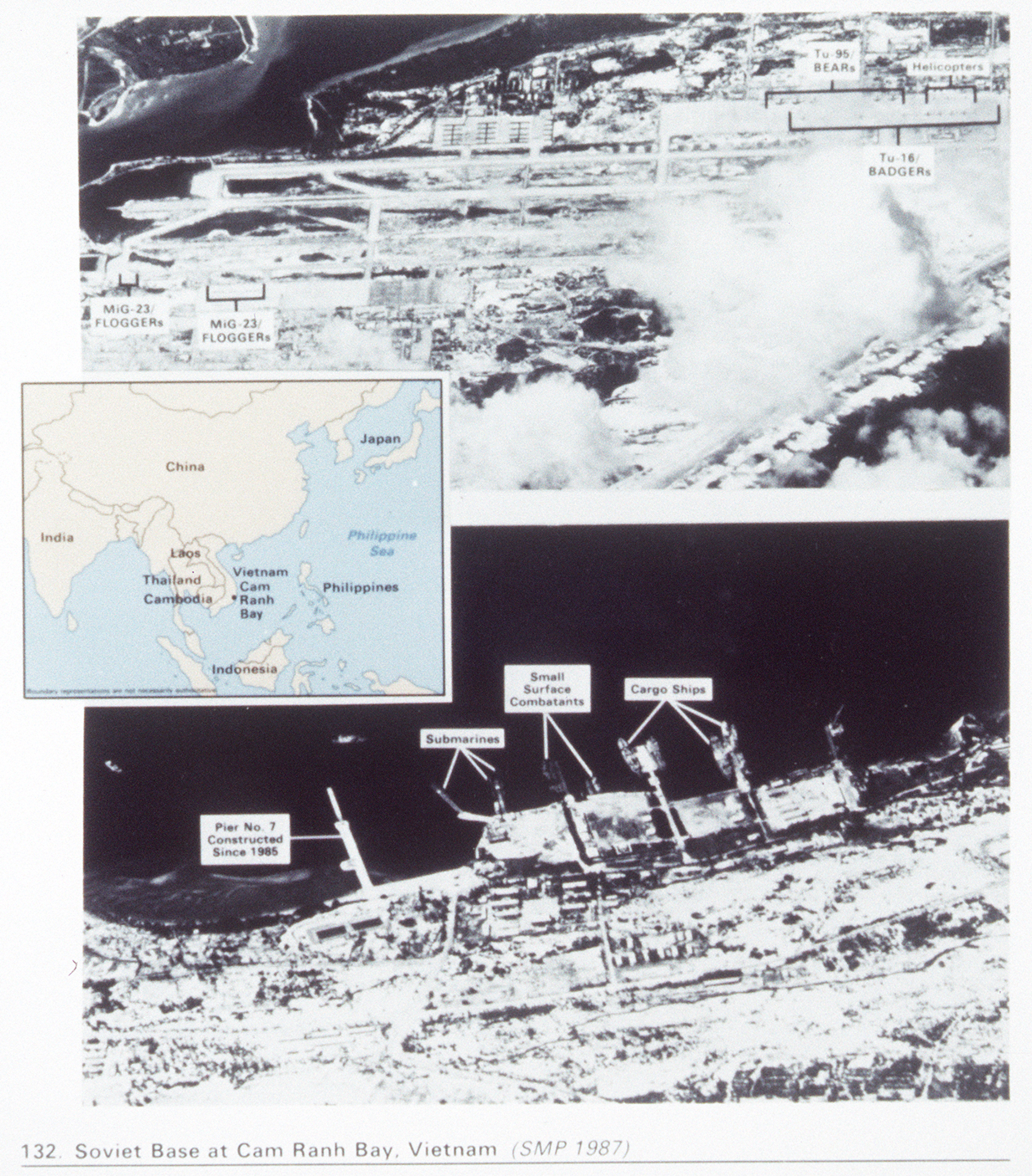 사이공 함락과 남북 베트남의 통일 4년 후, 깜라인만은 소련 태평양 함대의 중요한 냉전 해군 기지가 되었다.1979년, 소련 정부는 베트남과 기지 25년 임대 계약을 체결했다. 깜라인만은 소련 외부에 위치한 가장 큰 소련 해군 기지였으며, 이를 통해 동해에서 영향력을 확대할 수 있었다. 1987년까지 기지를 원래 크기의 4배로 확장했으며, 미국 태평양 함대의 정보에 따르면 필리핀 방향으로 모의 공격을 자주 실시했다. 분석가들은 베트남 측도 소련의 주둔을 잠재적인 중국의 위협에 대한 균형추로 여겼다고 분석했다. 소련과 베트남은 공식적으로 그곳에 주둔 사실을 부인했다.[17] 그러나 1988년 초, 당시 소련 외무장관 에두아르트 셰바르드나제는 깜라인만 철수 가능성을 논의했으며, 1990년까지 구체적인 해군 감축이 이루어졌다.[18][19]