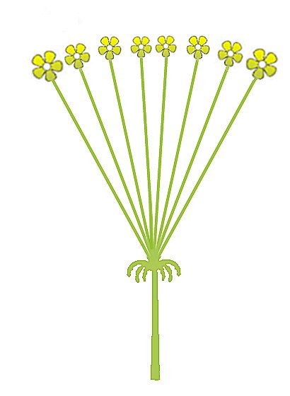 산형꽃차례 (umbel) | 꽃자루들이 꽃대축의 한 점에서 나와 우산 모양을 이루는 형태 |