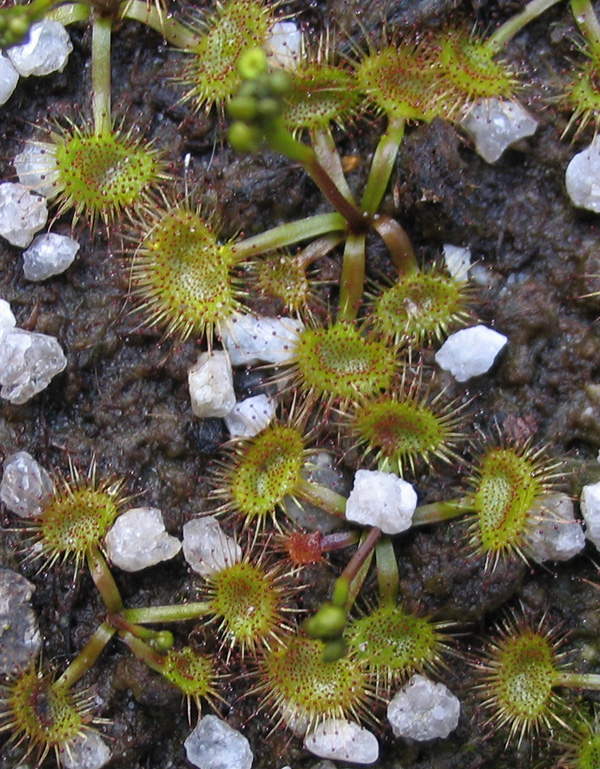 끈끈이주걱은 끈적한 점액으로 곤충을 잡아먹는 식충식물이며, 7월에 흰색 꽃이 피고, 습지에서 자라며, 천식 억제 약으로 사용되기도 하고 원예 식물로도 활용된다. - 1797년 기재된 식물 - 여로과