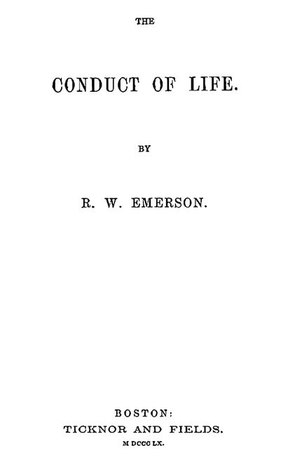 1860년 11월 10일에 완성된 에머슨의 일곱 번째 주요 작품인 《인생론/The Conduct of Life영어》은 같은 해 12월 12일에 미국과 영국에서 동시에 출판되었다.[5][6] 영국에서는 스미스, 엘더 & Co.에서 출판되었다.[6] 이 책은 "대서양 건너 현자의 성숙한 철학"으로 광고되었으며 "에머슨 씨의 이전 작품과 크기와 스타일이 동일한" 수집가의 소장품으로 판매되었다.[7]