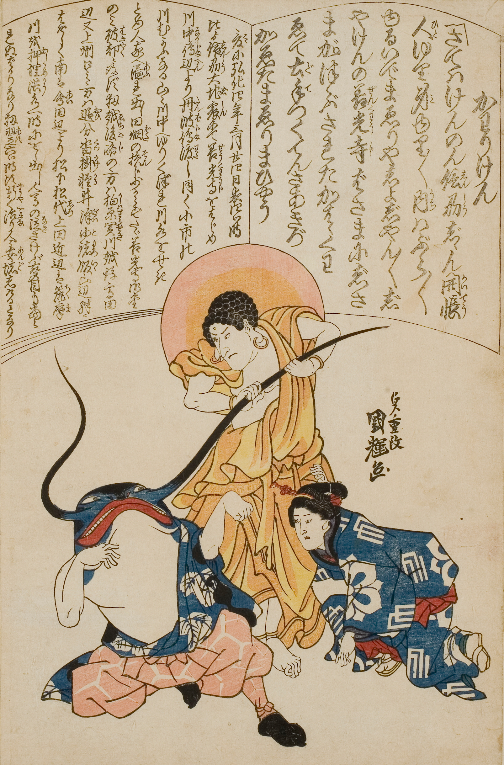 이 전설의 영향을 받아 지진 신화에서 대지를 지탱하는 큰 뱀이 지진 메기로 바뀌었다고 여겨지는데, 이를 시사하는 논술은 마쓰오 바쇼하이쿠에서 찾을수 있다