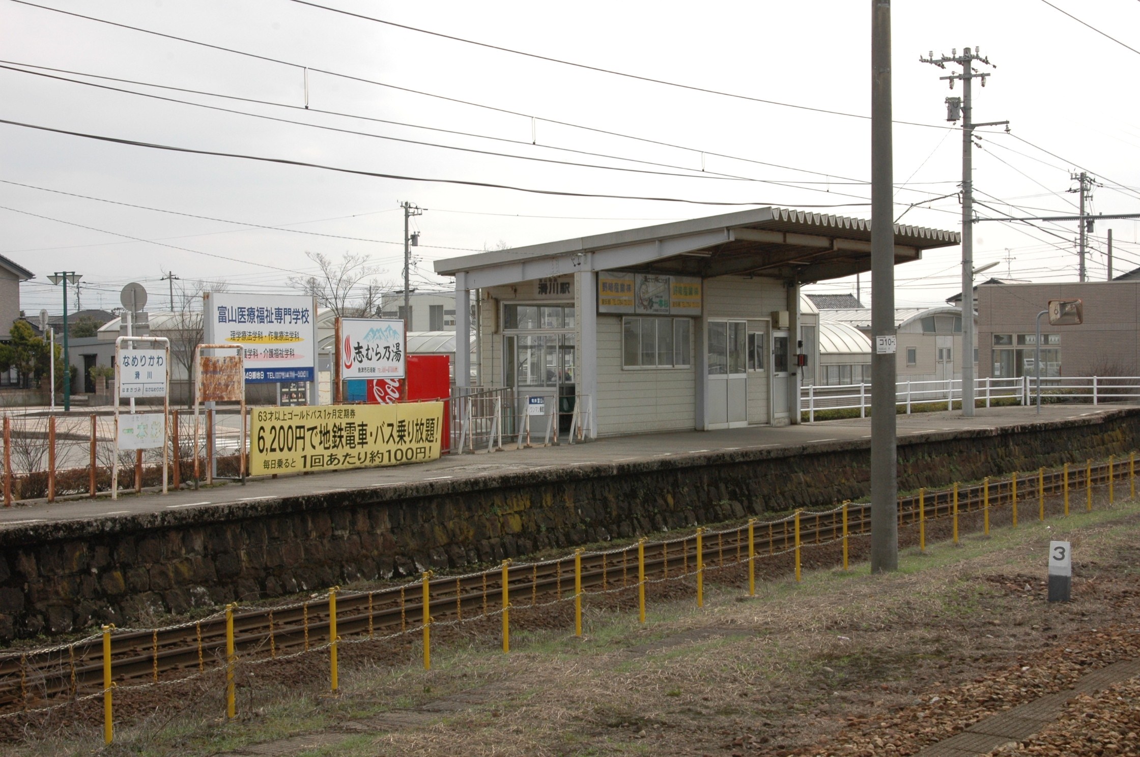 단식 1면 1선 구조의 지상역이며, 무인역이다.[59][60] 과거 호쿠리쿠 본선 나메리카와 역과 육교로 연결되었으나,[59] 현재는 개찰구 밖 지하도로 연결된다. 역 번호는 '''T18'''이다.3. 역세권 정보