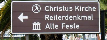 상점, 식당, 서비스업 관련 표지판에는 영어와 독일어가 함께 표기되는 경우가 많다. 이는 독일계 나미비아인이 주인이거나, 독일어권 관광객이 많이 방문하기 때문이다. 하지만 가게 안에서는 아프리칸스어로 인사받을 수도 있는데, 아프리칸스어가 빈트후크와 나미비아 중부 및 남부에서 링구아 프랑카로 사용되기 때문이다.[12]관광객을 위한 표지판, 특히 독일 식민지 시대 유적 관련 표지판에는 독일어가 자주 사용된다. 1990년 이전에는 독일어가 영어, 아프리칸스어와 함께 나미비아의 공식 언어였기 때문에, 그 당시에 설치된 표지판에도 독일어가 쓰여 있다.[12]