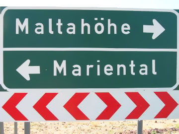 빈트후크, 스바코프문트, 케이트만스호프, 그루트폰테인, 뤼데리츠 등 여러 도시의 거리 이름에는 독일어의 흔적이 남아있다. 1990년 이전 거리 이름은 독일어 "Straße"와 아프리칸스어 "straat"의 축약어인 "Str."로 끝나는 경우가 많다. 1990년 이후 거리 이름은 영어 "Street"의 축약어인 "St."로 끝나는 경우가 많다.[12][13]