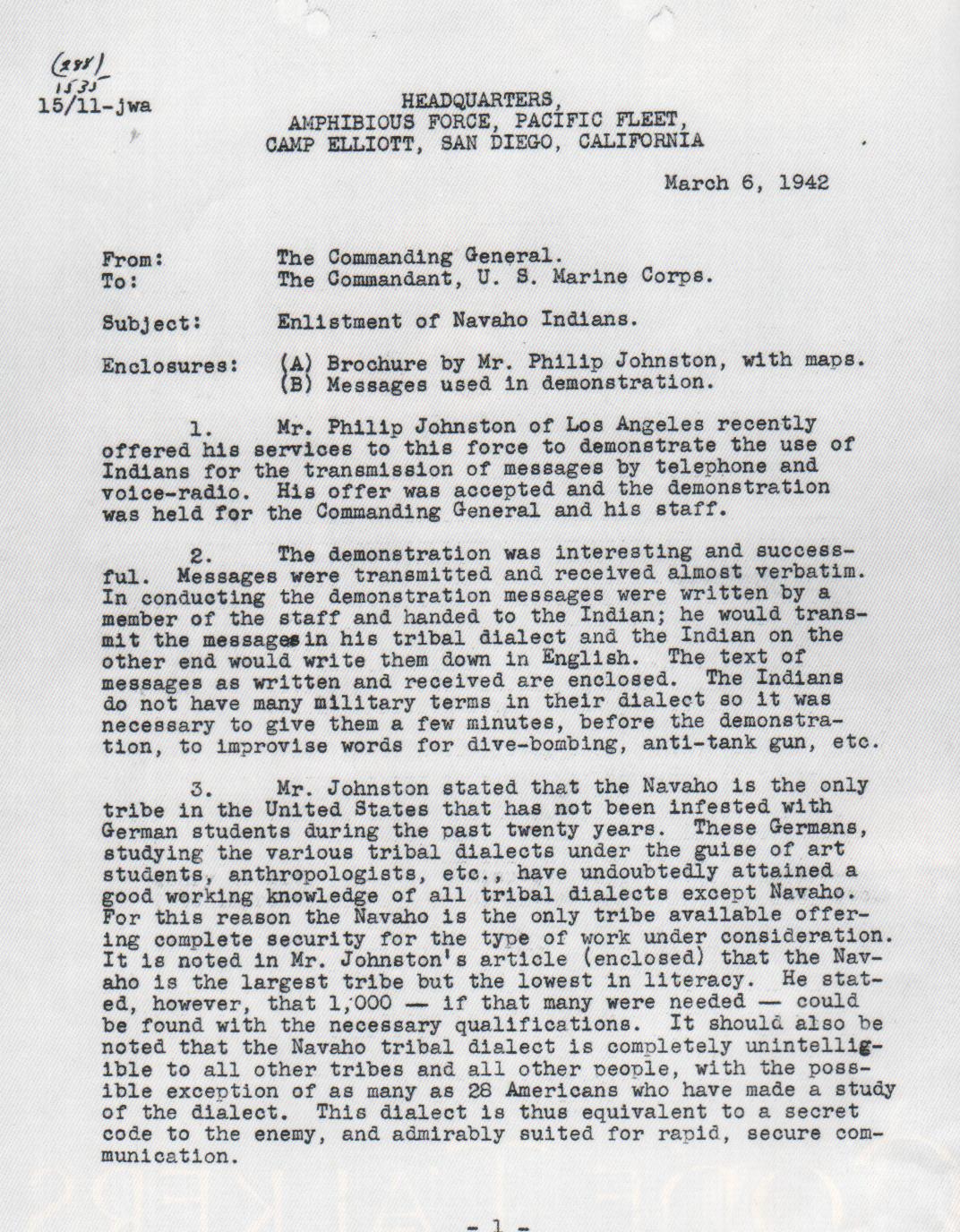 나바호 코드 토커들은 제2차 세계 대전에 대한 공헌으로 널리 인정받고 있다. 제5해병사단 통신 장교인 하워드 코너(Howard Connor) 소령은 "나바호족이 없었다면 해병대는 이오지마를 점령하지 못했을 것"이라고 말했다.[19]