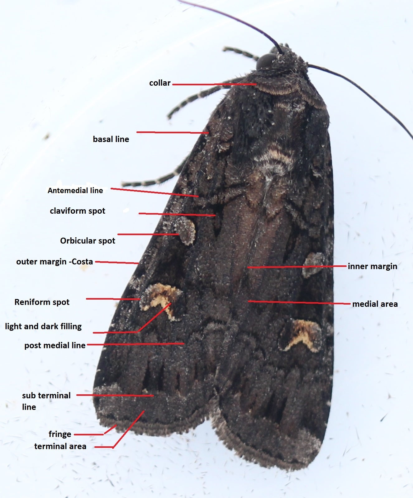 나비와 나방을 구별하는 확립된 규칙은 없지만, 나비는 가늘고 더듬이 끝에 작은 공이나 곤봉이 있는 반면(세줄나비과 제외), 나방의 더듬이는 보통 깃털 모양이며 끝에 공이 없다는 점이 좋은 지침이 된다. 이러한 원리에 따라 "곤봉더듬이"(Rhopalocera) 또는 "다양한 더듬이"(Heterocera)로 구분한다.