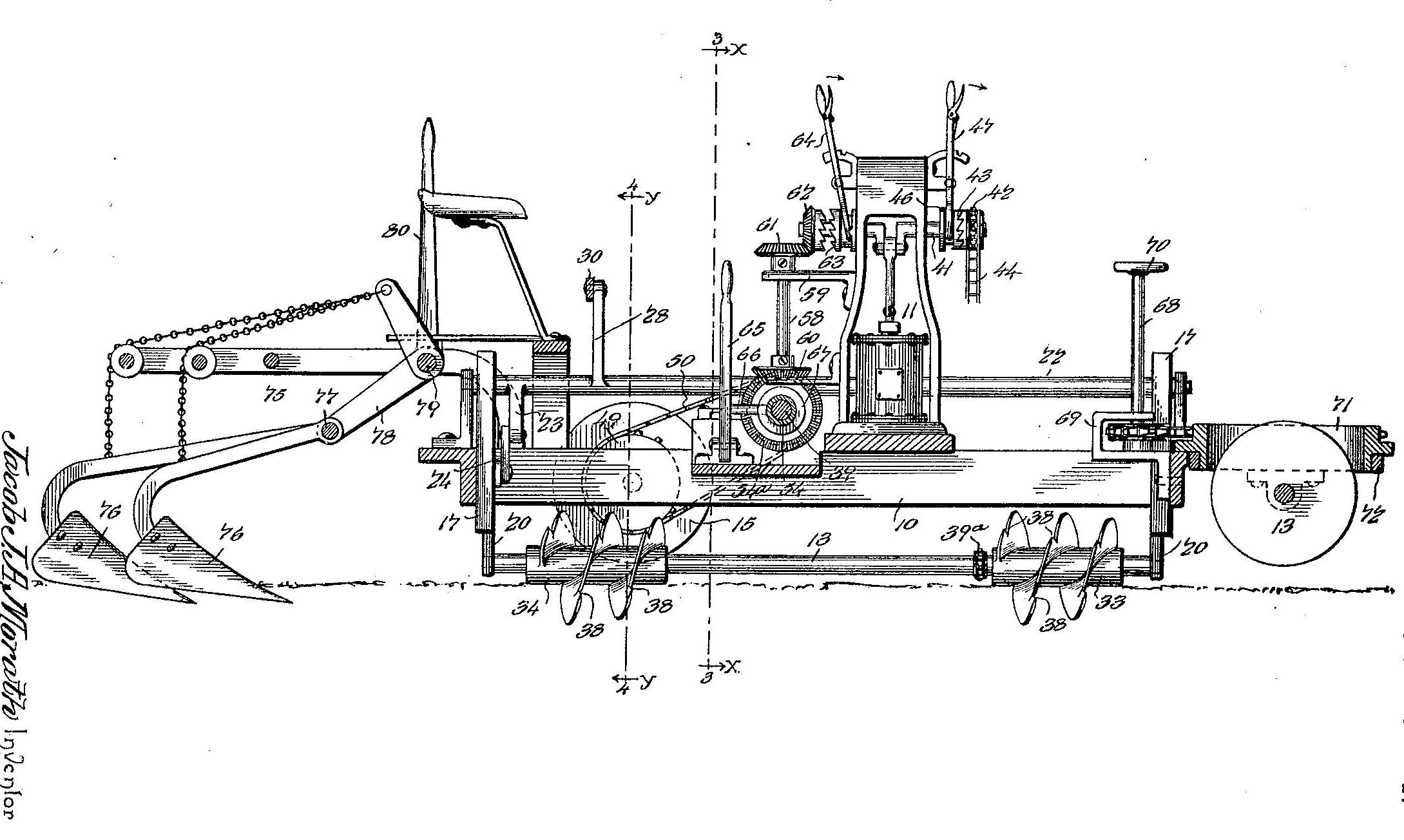 나사 추진 차량의 초기 예시 가운데 하나는 1868년에 미국 미주리주 세인트루이스에 거주한 스위스 출생 제이콥 모라스가 디자인한 것이다.[25] 모라스의 기계는 쟁기질 등의 농업용으로 설계되었다. 어거는 기계가 움직이면서 땅의 뿌리를 자를 수 있도록 설계되었다.[26]