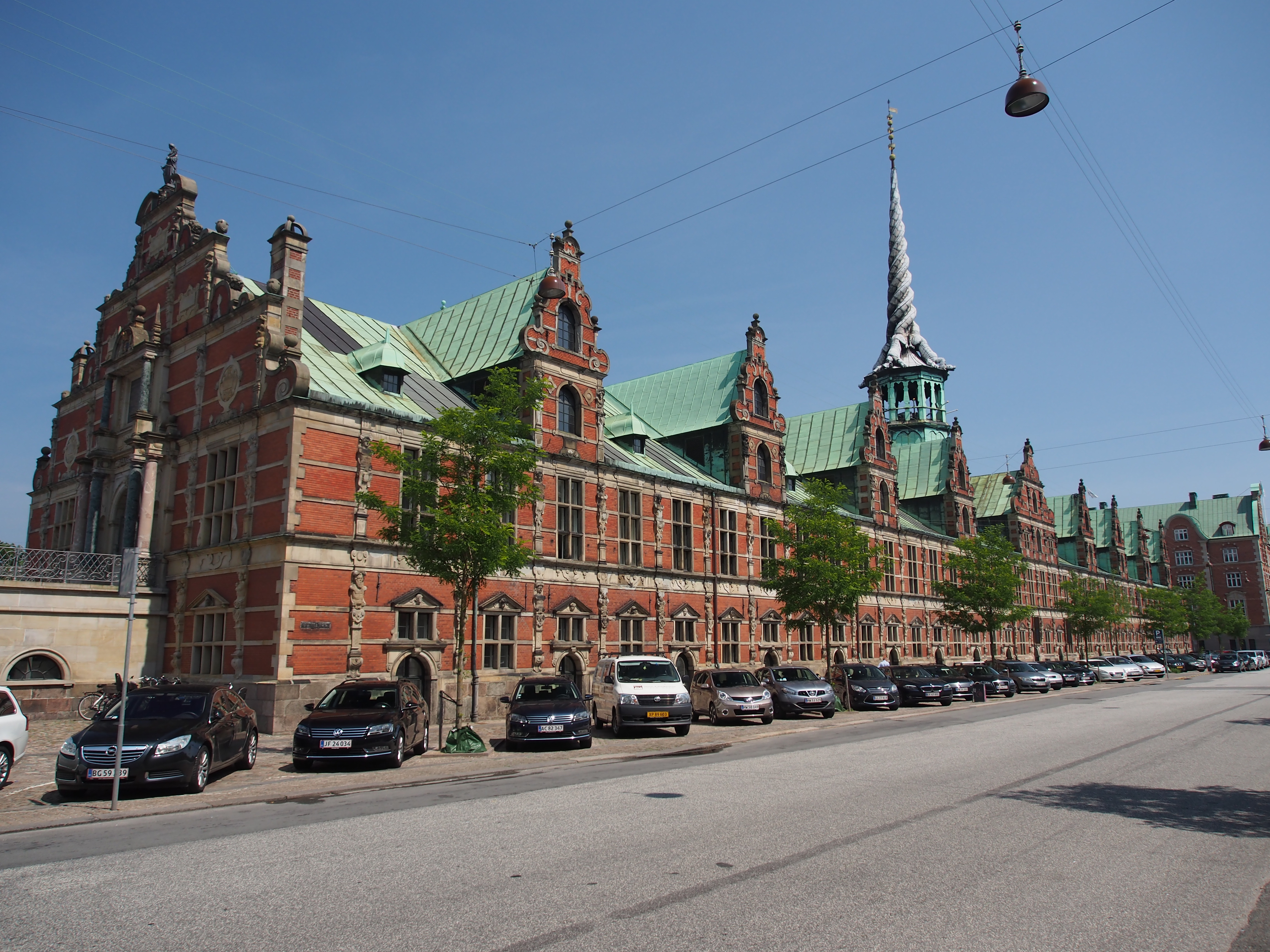코펜하겐 증권 거래소는 중상주의 시대에 해외 무역의 중요성을 인식한 크리스티안 4세의 정책에 따라 1625년에 상품 거래소로 설립되었다.[5] 이후 건물은 전쟁 자금 마련을 위해 일시적으로 저당 잡혔지만, 1883년까지 증축되었다.[5] 1808년에는 조직화된 근대적인 거래소로서의 기능이 시작되었고,[6] 1840년대에 경매 방식의 거래가 시작되었다.[7] 1918년에는 무정부주의자들의 습격 사건이 있었다.[8]