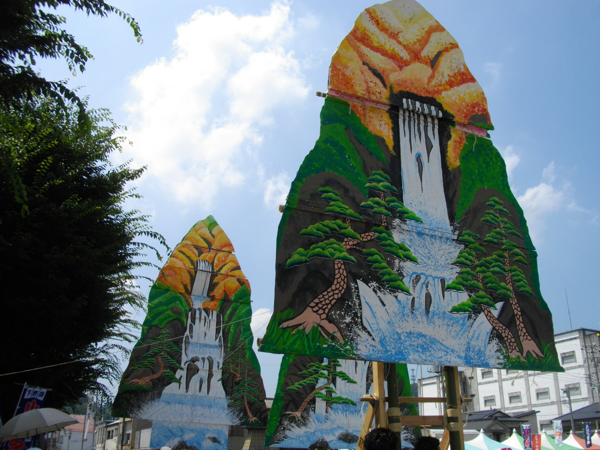 - 메구로 제작소의 대형 간판 - 야마아게 회관 앞에 있으며, 가와사키 모터스가 나스카라스야마시에 기증했다. 크기는 높이 2.8m, 폭 4.5m이다.[12]