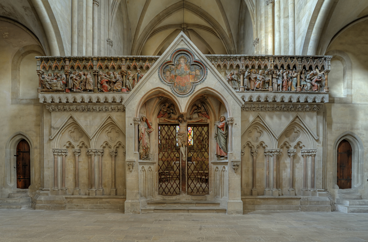나움부르크 마스터는 높은 수준의 극적인 표현력과 자연스러운 생동감을 달성했다. 예를 들어, 유대인들은 전형적인 모자를 쓰고 있는 반면, 빌라도는 화려한 궁정 의복을 입고 책임에서 손을 씻는 모습으로 묘사된다. 이 예술가는 제한된 공간을 활용하는 놀라운 능력을 보여주었다. 최후의 만찬 장면에서 그는 가운데 그리스도와 명확히 고립된 배신자 유다를 제외하고는 제자의 수를 넷으로 제한했다. 성가대석 스크린의 중앙 포털에 있는 기념비적인 다색 십자가형 그룹은 그리스도의 헤아릴 수 없는 고통과 마리아와 요한의 깊고 분명한 슬픔을 인상적으로 보여준다.[14]