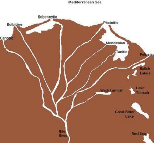 고대 기록(프톨레마이오스 등)에 따르면 나일강 삼각주는 7개의 분류수계(지류)로 나뉘어 있었다.[4] 동쪽에서 서쪽 순으로 다음과 같다.
