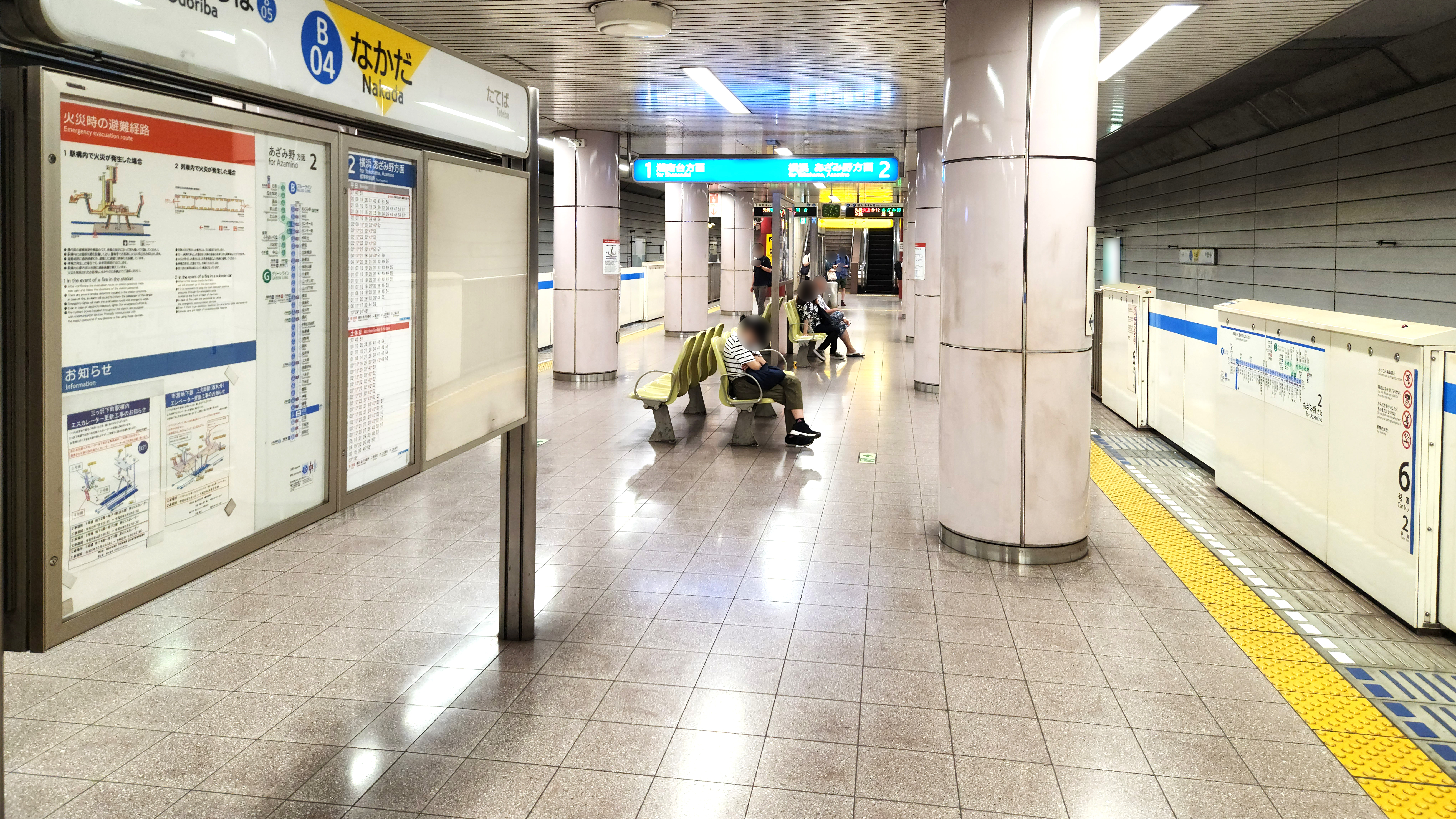 역 소재지였던 옛 지명 "나카다정(中田町)"에서 유래했다. 지역에서는 지명의 발음을 "나카다"라고 불렀지만, 주거 표시 변경 시에 "나카타"로 표시되어 버렸다.[1] 그래서 지하철 개통 전에 지역의 오쿠쓰 씨를 중심으로 교통국과 협의가 이루어져, 역명을 "나카다"로 결정했다.[1]3. 역 구조