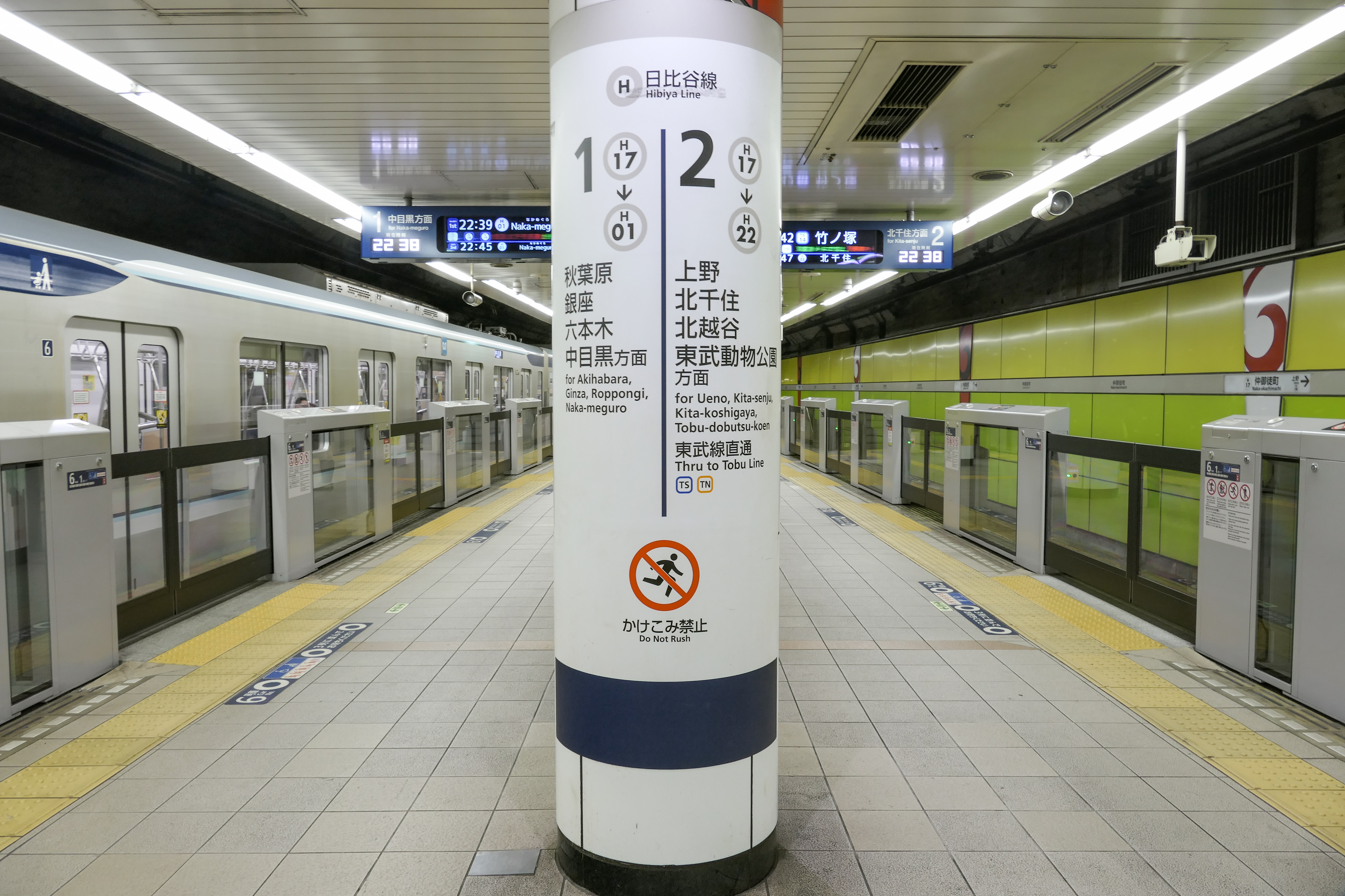 오에도선 연결에 따른 개량 공사로 우에노 방면 개찰구로 향하는 계단이 증설되고 에스컬레이터가 신설되었으며, 천장, 바닥, 벽면이 개장되었다.[8] 승강장 측벽에는 일러스트가 그려져 있는데, 히비야선에서는 아키하바라역에 이은 사례이다.