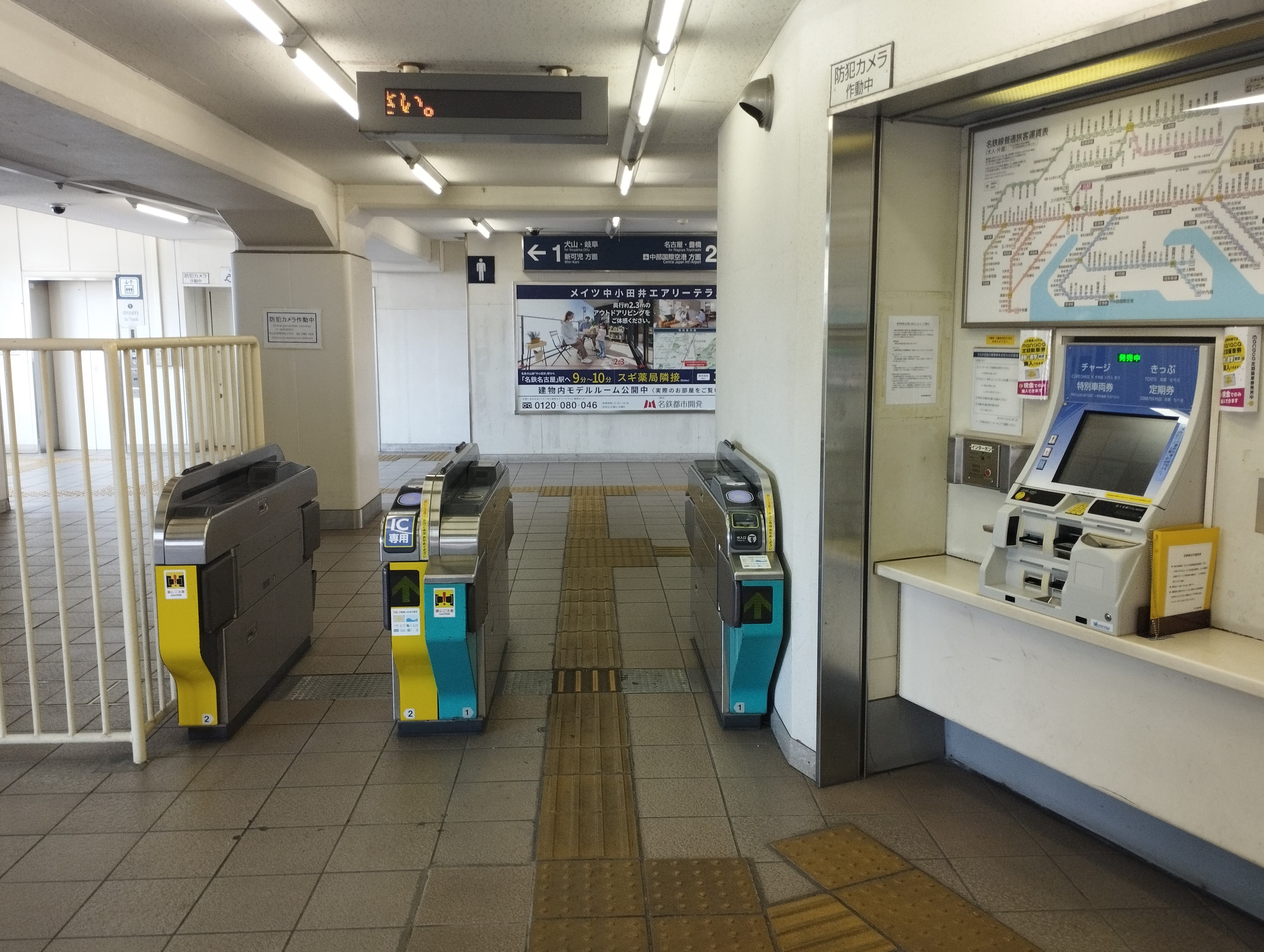 3층 고가역으로, 8량 편성에 대응하는 상대식 2면 2선 구조이다. 개찰과 표 발매는 자동화되어 있으며, 역무원은 없다.[3]개찰구는 2층에, 승강장은 3층에 있다. 개찰구 근처에는 자동 발매기(연속 manaca 정기 승차권 구입도 가능하지만, 지불 방법은 현금에 한함)와 자동 정산기(IC 카드 사용 가능)가 설치되어 있다. 화장실은 개찰구 안에 있으며, 출입구와 개찰구 사이, 개찰구와 승강장 사이를 연결하는 엘리베이터도 설치되어 있다.[3]