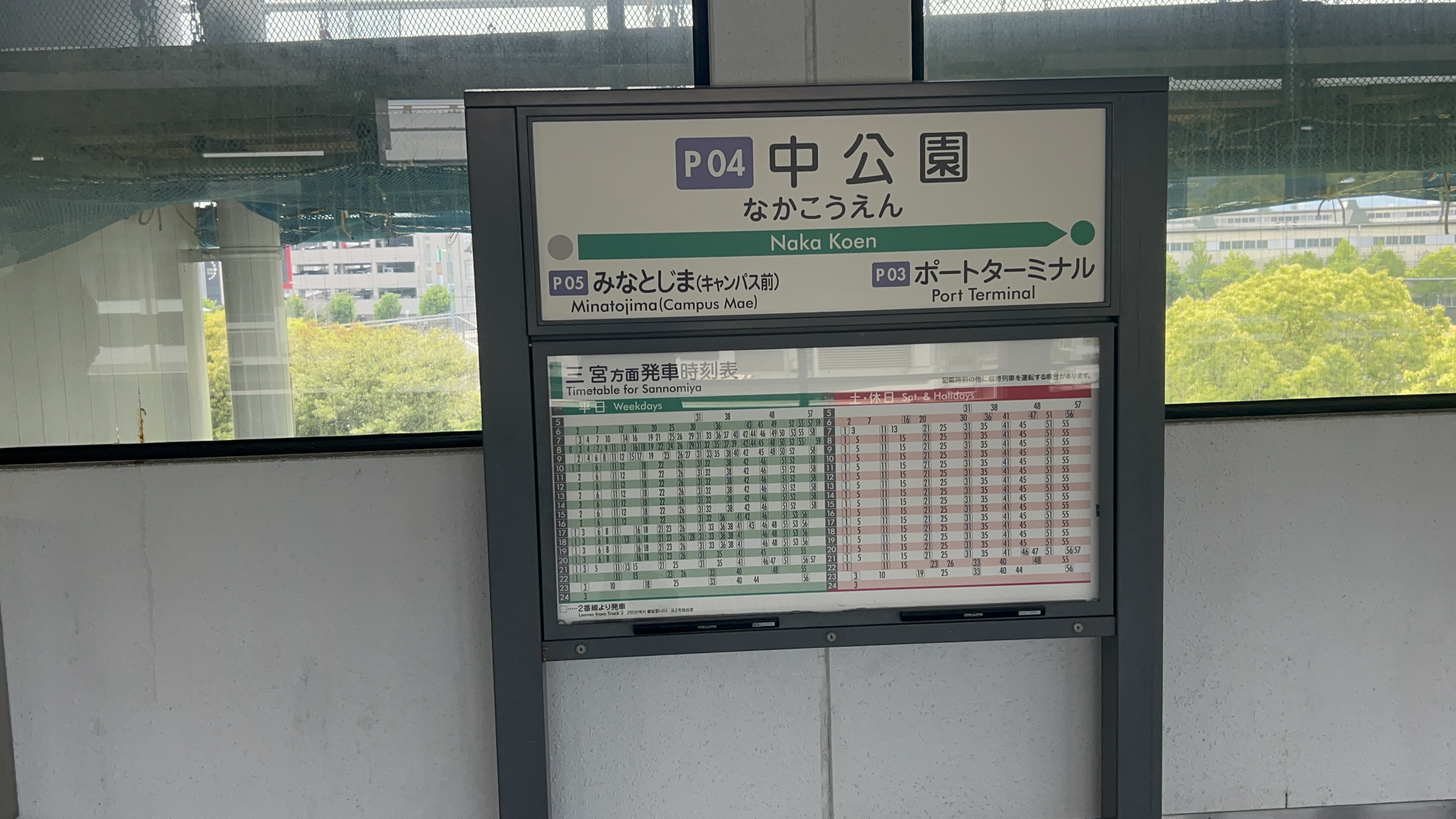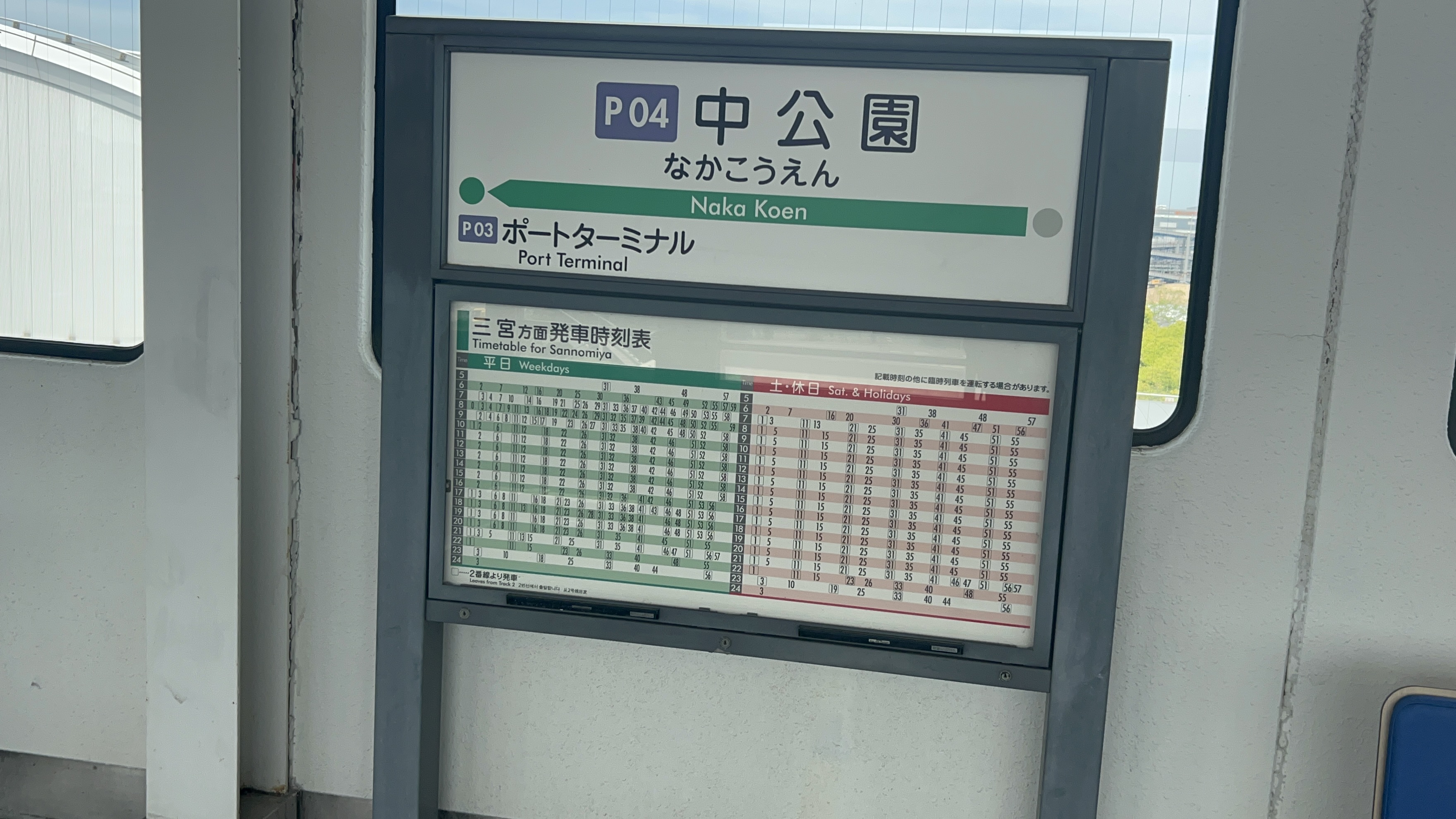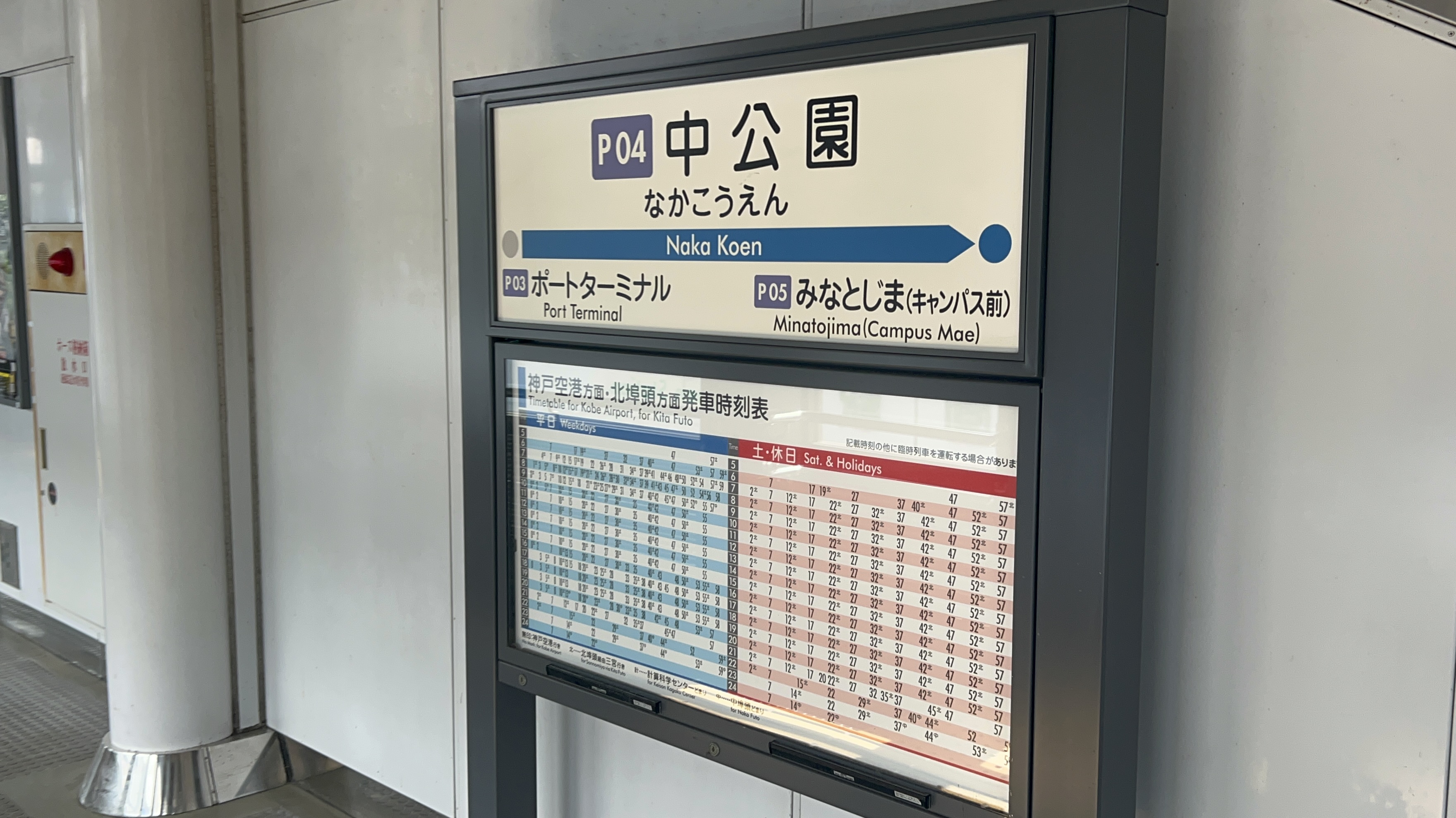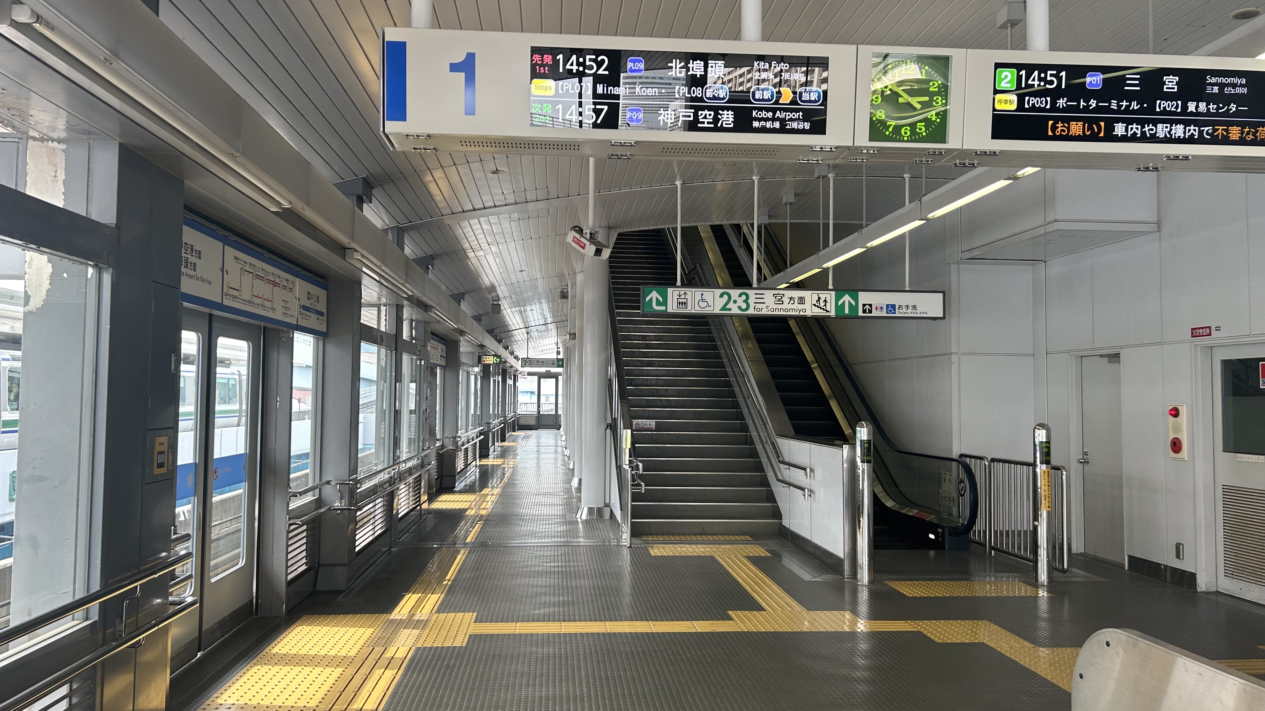 포트 터미널 (P03) | (고베 공항역 발착・기타후토 방면(하행)) | 미나토지마 역 (P05) |