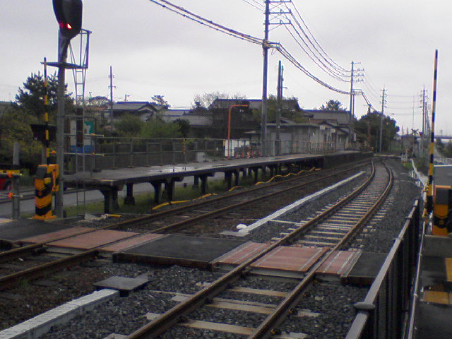 - 구내에는 승강장 번호 표기가 존재하지 않지만, 역 이전 당시의 고지 포스터에서는 상기의 승강장 번호가 사용되었다. 또한, 운전 취급상의 번선 번호는 이 표기와는 반대로 되어 있다 (하행이 "1번선", 상행이 "2번선").[1]