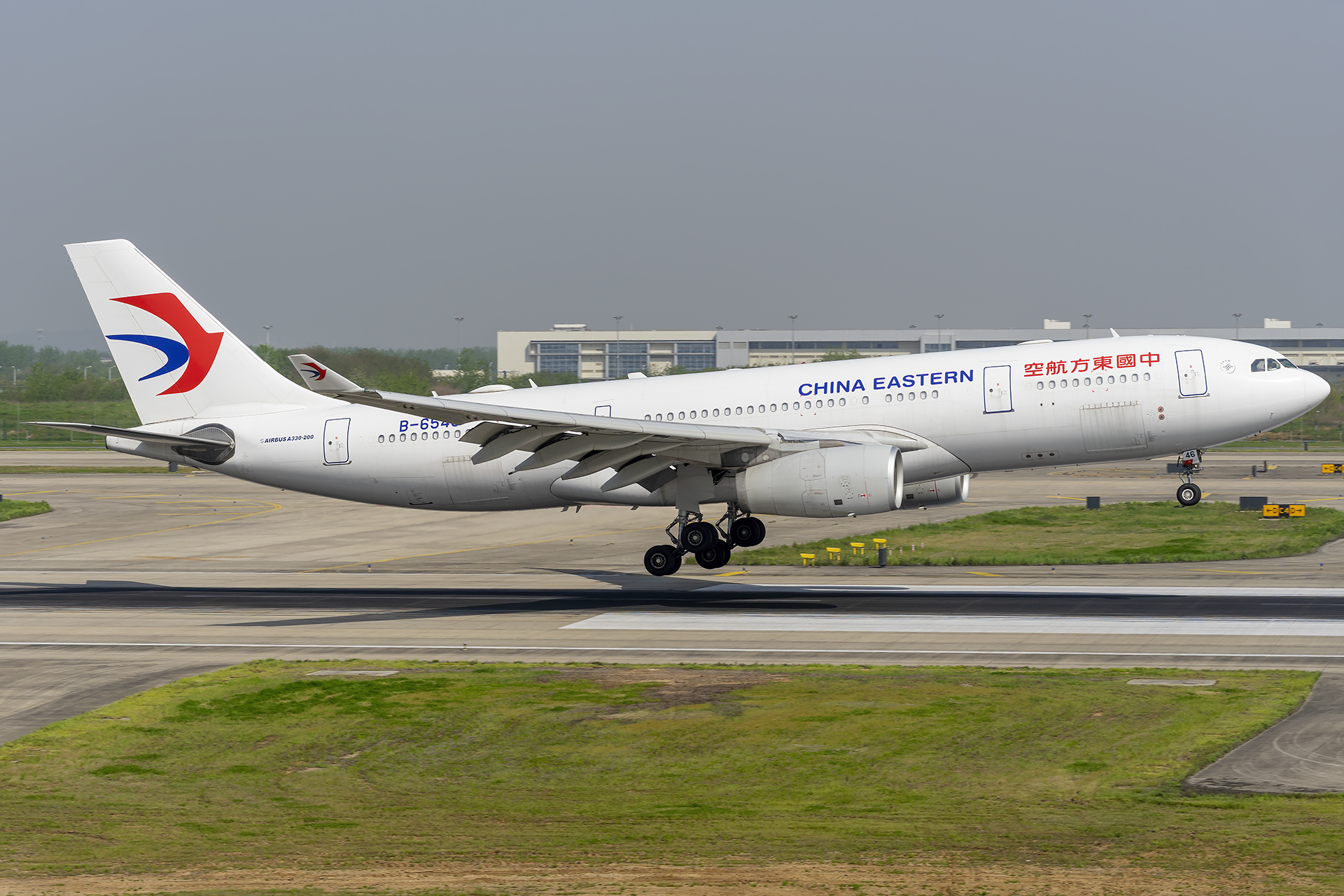 중국 동방 항공 에어버스 A330-243 기종이 난징 루커우 국제공항 07 활주로에 착륙하고 있다