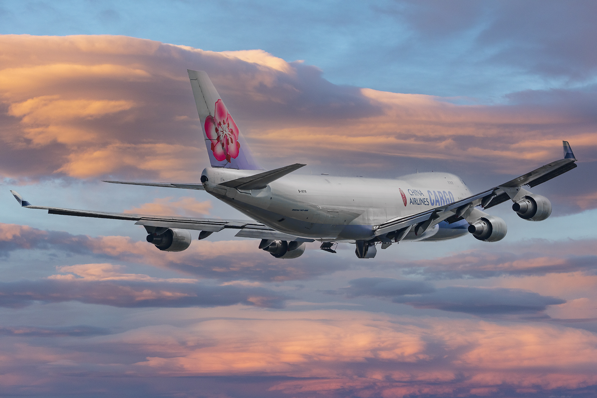중화 항공 화물 보잉 747-400 -409F 기종이 난징 루커우 국제공항에서 출발하고 있다