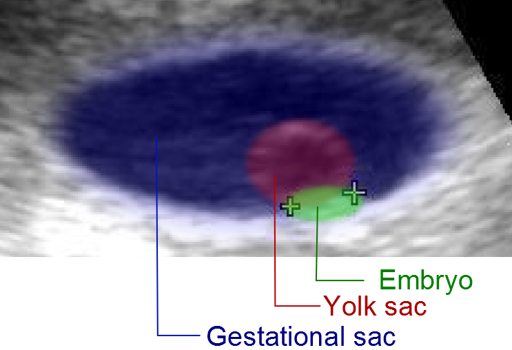 난황낭은 임신 중 임신낭 내에서 처음 관찰되는 요소이며,[1] 일반적으로 임신 3일차에 관찰된다.