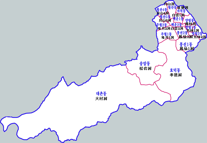 봉선1동 | 鳳仙1洞 | 0.83 | 6,682 | 14,233 |