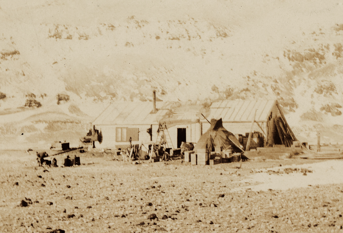 카르스텐 보르크그레빈크의 ''서던 크로스 탐험''(1899)의 남극 첫 기지. 오두막(HSM 22)은 여전히 서 있으며, 케이프 아데어에 위치해 있는데, 이곳은 1895년 보르크그레빈크가 남극 대륙에 처음으로 기록된 상륙에 참여한 곳이다.