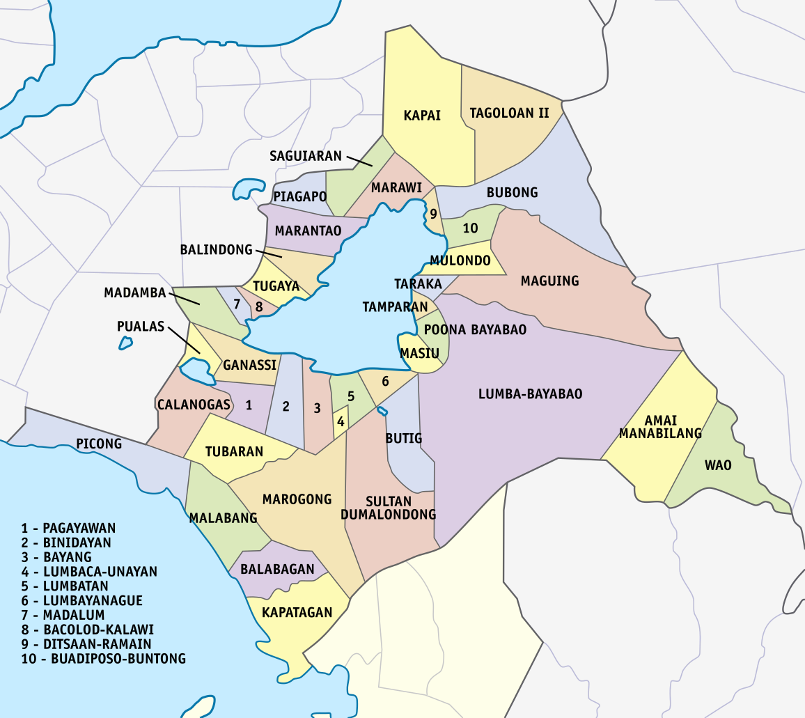 자치체 | 아마이 마나빌랑 바콜로드-칼라위 발라바간 발린동 바양 비니다얀 부아디포소-분통 부봉 부티그 칼라노가스 딧사안-라마인 가나시 카파이 카파타간 룸바-바야바오 룸바카-우나얀 룸바탄 룸바야나궤 마달룸 마담바 마구잉 말라방 마란타오 마로공 마시우 물론도 파가야완 피아가포 피콩 푸나 바야바오 푸알라스 사기아란 술탄 두말론동 타골로안 II 탐파란 타라카 투바란 투가야 와오 |