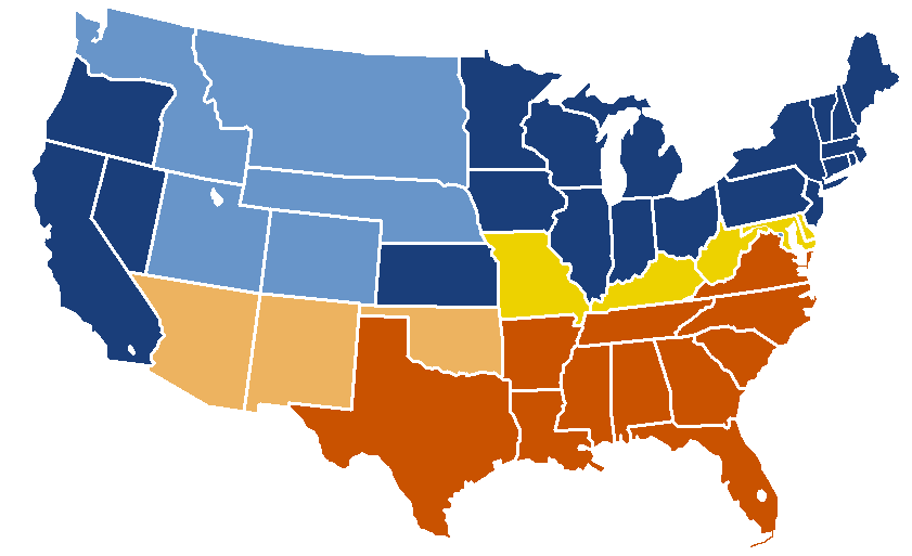 미국은 메이슨 딕슨 선에 의해 명확하게 두 지역으로 나누어진 나라였다. 뉴잉글랜드 북동부 및 중서부의 경제는 가족에 의해 운영되는 농장, 제조, 광업, 상업 및 운송 사업을 기반으로 빠르게 성장하였고, 경계 주 이외에서 노예가 없어도 인구가 급속히 확대되고 있었다. 이 인구 확대는 높은 출산율과 유럽 이민자들에 의해 기인한 것이었다. 특히 아일랜드인, 영국인, 독일인, 폴란드인과 북유럽 이민자가 많았다. 남부는 노예에 의해 개척 된 농장이 지배적이며 급속한 성장이라고 하면 텍사스와 같은 남서부에서 일고 있었다. 이곳의 인구 증가는 역시 높은 출생률에 의한 것이었고, 이민자 수는 그렇게 많지 않았다. 전체적으로 보면, 북부 지역의 인구 증가 속도가 남부를 웃돌았으며, 이것이 남부의 위기감을 조성하고 있었다. 남부는 경계 주를 제외하고 도시와 마을이 거의 없었고, 제조업도 마찬가지였다. 노예 소유자는 정치와 경제를 이끌어 있었지만, 남부 백인의 2/3는 노예를 소유하지 않았고, 주로 생계형 농업에 머물고 있었다. 정치적으로 그런 노예가 아닌, 노예 제도를 지키기 위해 싸우는 농장주를 지지하는가의 문제였다.