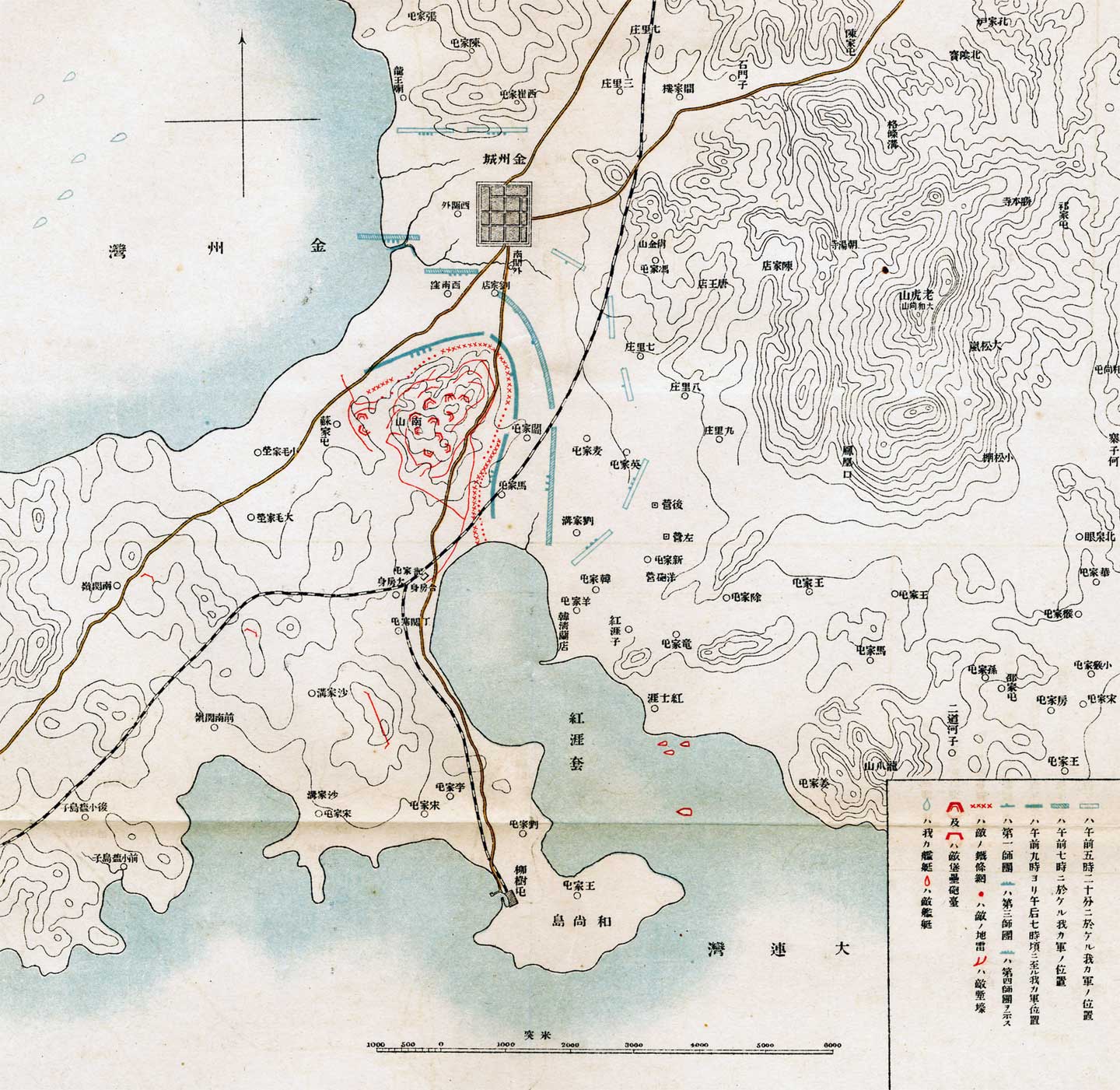 진저우 만에서 일본 해군은 함포 사격으로 공격을 지원했지만, 러시아군의 강력한 방어에 큰 피해를 입었다. 그러나 끈질긴 공격으로 포탄이 소진된 러시아군은 결국 철수할 수밖에 없었다. 제2군은 남산을 점령하고 승리했다.