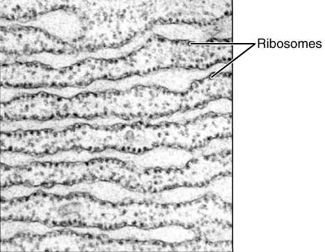 조면소포체는 세포질 쪽 표면에 리보솜이 많이 붙어 있어 전자 현미경으로 관찰했을 때 표면이 거칠게 보이기 때문에 붙여진 이름이다.[27][69] 조면소포체는 단백질 합성과 가공에 특화되어 있다. 리보솜에서 합성된 단백질(특히 분비될 단백질이나 막단백질)은 조면소포체 내강으로 들어오거나 막에 삽입되어 올바른 3차원 구조로 접히고, 필요한 경우 탄수화물과 같은 화학 그룹이 첨가되는 번역 후 변형 과정을 거친다. 이렇게 완성된 단백질은 세포 내 필요한 곳으로 보내지거나, 추가 가공을 위해 골지체로 운반된다.[24][66][69]