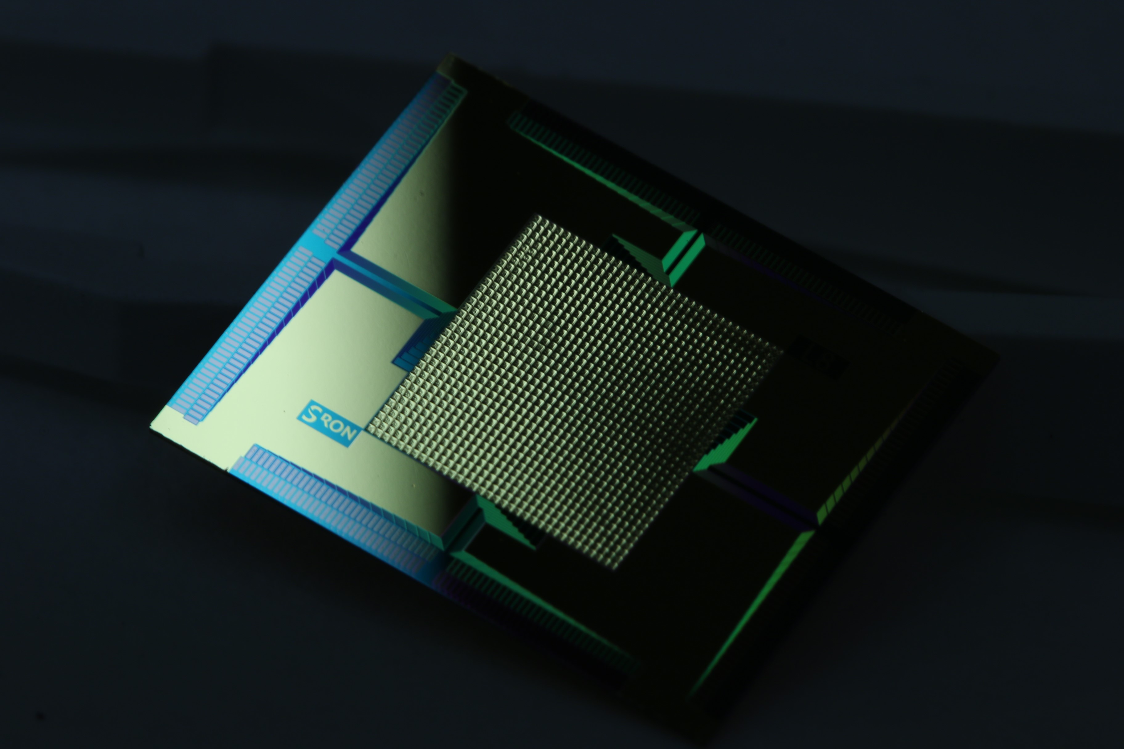 SRON에서 개발한 우주 X선을 감지하는 전이 가장자리 센서(TES) 칩. 출처: Kenichiro Nagayoshi (SRON)