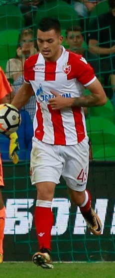 2017년 7월 21일, 레드 스타 베오그라드로 이적하여 5년 계약을 맺었다.[11][12] 공식적으로는 2019년 여름까지 임대 형식이었으며, 등번호 49번을 받았다.[13][14] 2017-18 UEFA 유로파리그 3차 예선 1차전에서 교체 출전하며 데뷔전을 치렀고,[15] 플레이오프 2차전에서는 팀의 첫 골을 기록하며 승리에 기여했다.[16] 2017년 8월 27일에는 첫 슈퍼더비 경기에 출전했고,[17] 2017년 9월 14일 FC BATE 보리소프와의 경기에서 1-1 무승부를 만드는 골을 넣었다.[18] 2018년 4월 14일 슈퍼더비 경기에서 복귀하여 레드 스타 베오그라드 소속으로 첫 리그 골을 넣었고,[20] 시즌 종료까지 5경기에서 4골을 추가하며 프로 경력 첫 우승 트로피를 들어올렸다.[49][21] 2018년 5월, 2017–18 세르비아 슈퍼리가 시즌 베스트 11에 선정되었다.[22]