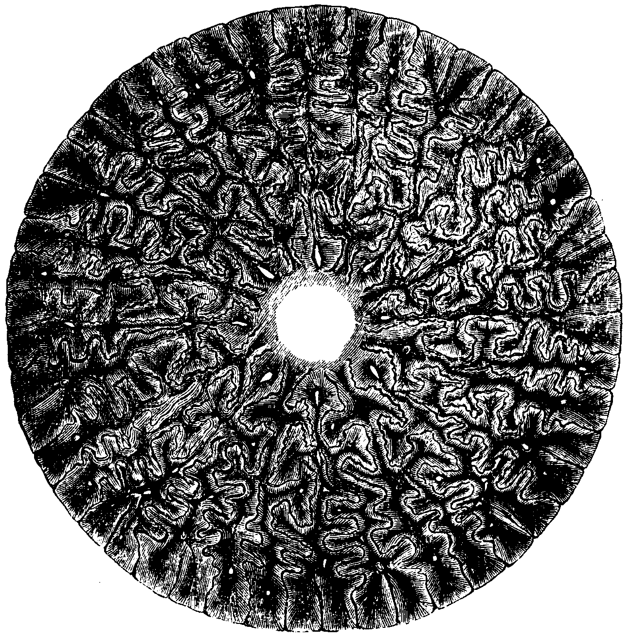 사지동물은 단면에서 볼 수 있듯이 에나멜이 안쪽으로 접힌 "주름상아질(plicidentine)"이라는 치아 구조를 가지고 있었다.[85][86] 초기 사지동물에서 발견되는 더 극단적인 형태는 "미궁치(labyrinthodont)" 또는 "미궁상 주름상아질(labyrinthodont plicidentine)"로 알려져 있다.[85][86]