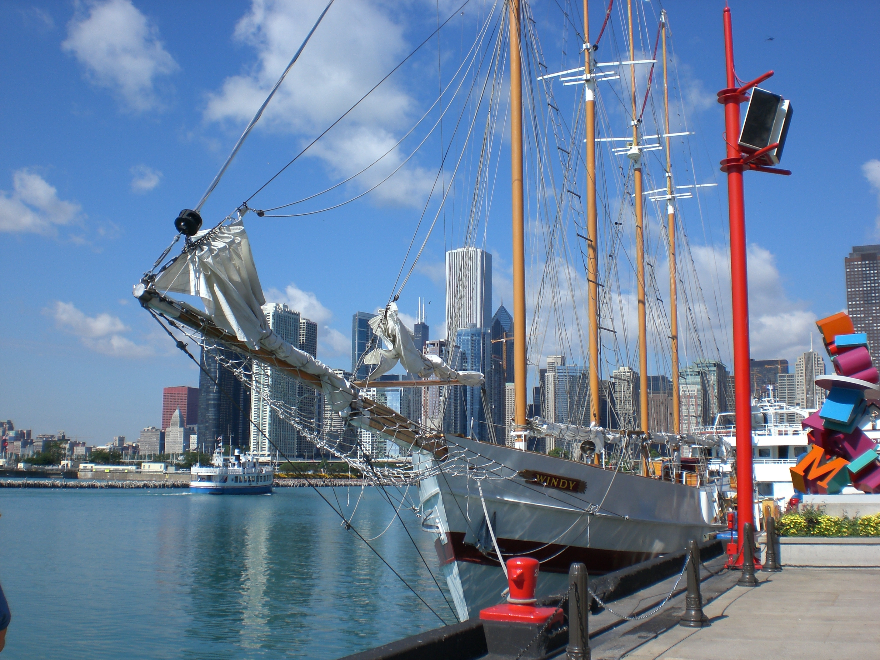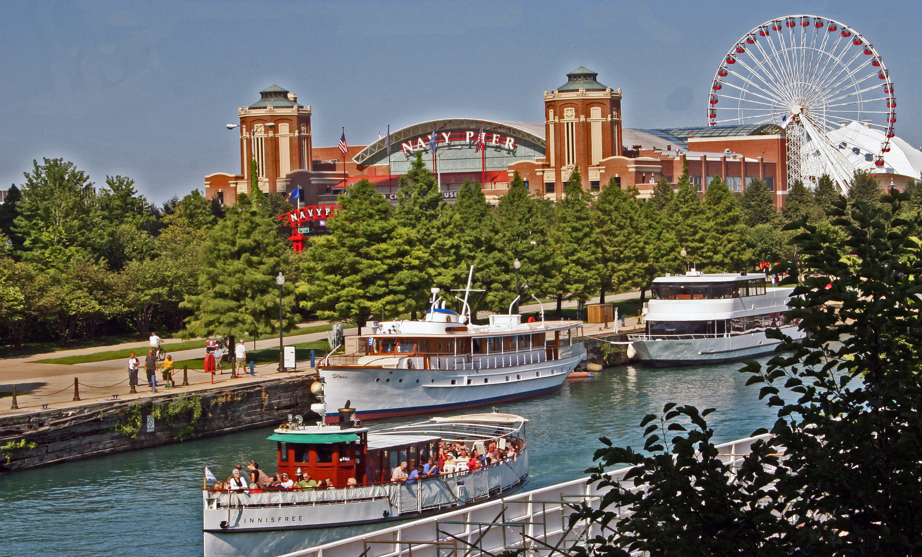 네이비 피어에서는 Seadog Ventures, Shoreline Sightseeing (Shorelinesightseeing.com) 크루즈 및 수상 택시 서비스와 같은 회사의 관광 투어와 "윈디(Windy)"라는 이름의 범선을 이용한 투어를 제공한다. 또한 Entertainment Cruises의 배인 ''시카고의 정신(Spirit of Chicago)'', ''오디세이 II(Odyssey II)'', ''미스틱 블루(Mystic Blue)''를 이용한 디너 크루즈도 있다.[24]