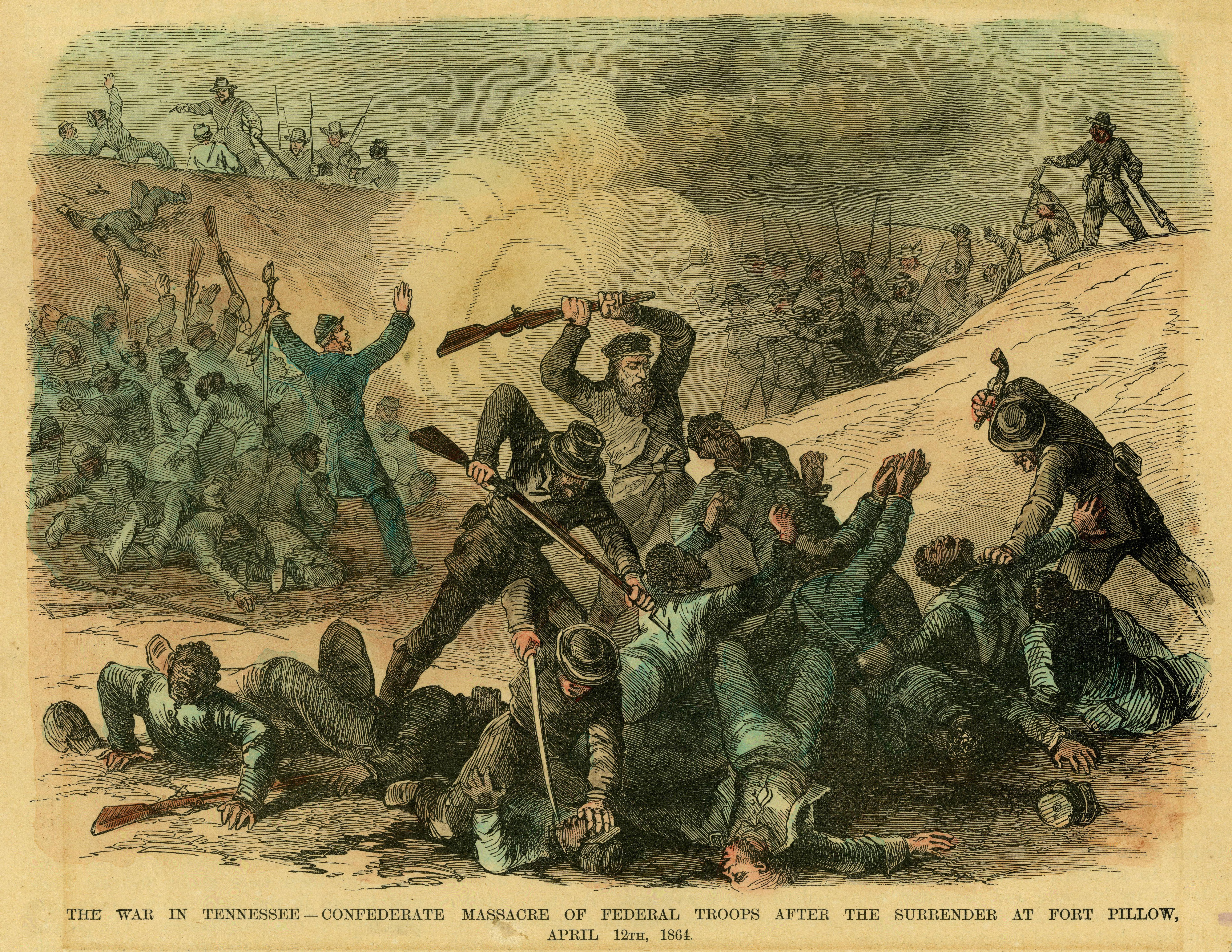 그 다음 일어난 일은 포트 필로 학살로 알려지게 되었다.[72] 미 육군 병사들이 항복했을 때, 포레스트의 부대는 백인과 흑인 미 육군 병사들을 학살하며 총격을 가했다.[73] 역사가 존 침프리치와 브루스 탭에 따르면, 그들의 수가 거의 같았지만, 흑인 미 육군 병사의 3분의 2가 사망한 반면, 백인은 3분의 1만 사망했다.[74] 포트 필로에서의 잔학 행위는 밤새도록 계속되었다.[75]