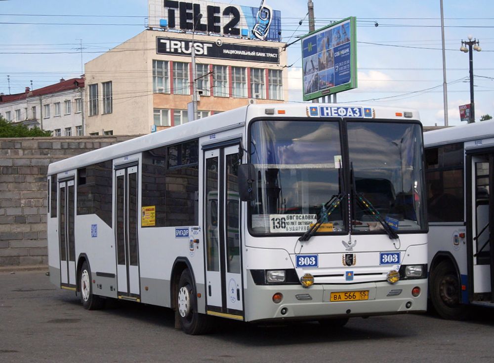 | 2 | 2004–2013 | 전면 디자인이 평평하게 변경되었고, 가짜 라디에이터 그릴이 추가되었다. 그릴 양쪽에는 직사각형 헤드램프가 배치되었으며, 원형의 전면 주차등과 방향 지시등은 범퍼에 위치한다. 후미등은 1세대와 동일하게 두 개의 블록으로 된 수평 직사각형 형태이다. 왼쪽 창문 라인이 내려간 디자인은 유지되었다. 2007년에는 내부 전면과 중간 부분의 바닥이 낮은 로우 엔트리(Low-entry) 버전이 출시되었고, 2012년에는 전체 바닥이 낮은 로우 플로어(Low-floor) 버전(NefAZ-52994)이 출시되었다. 초기 모델은 검은색 다이아몬드 모양 프레임 안에 헤드라이트가 있는 특징이 있다. | |