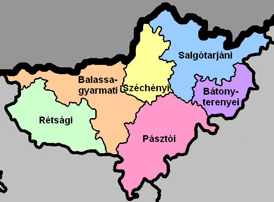 산악 지형으로 인해, 이 주는 계곡에 자리 잡은 작은 마을들이 특징이다. 두 개의 가장 큰 정착지는 과거 주도였던 발라샤자르마트(Balassagyarmat)와 20세기 초 근처 탄광으로 인해 산업 중심지가 된 살고타르얀(Salgótarján)이다.
