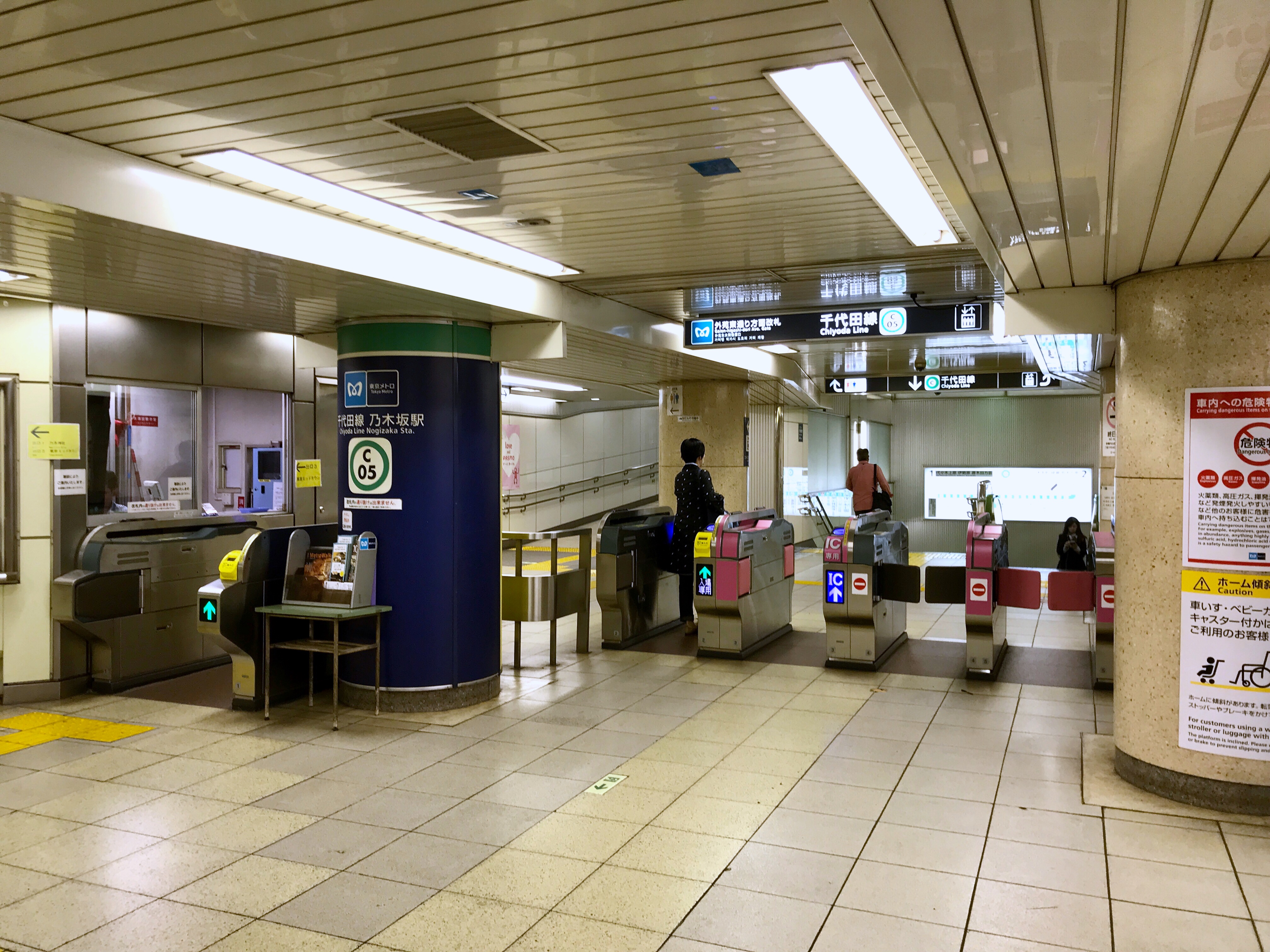 - 2010년 (헤이세이 22년) 12월 29일: 4번 출입구에 인접한 "호텔 하아토인 노기자카(켄포카이칸)" 폐관에 따라 출입구 폐쇄. 이후 당역의 4번 출입구는 폐번됨.