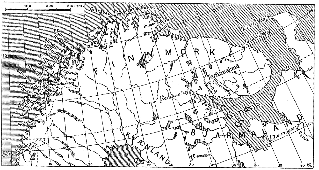 핀마르크, 말랑엔 피오르 북쪽의 해안 지역, 현재 러시아무르만스크 및 핀란드 북부 라플란드 일부 지역은 노르웨이의 과세 대상 영토로 여겨졌다. 핀마르크는 Finnmǫrk|핀모르크non에서 유래했으며, 이는 사미족의 땅인 Sápmi|사미non에 대한 고대 노르웨이어(노르론어) 표현이다.